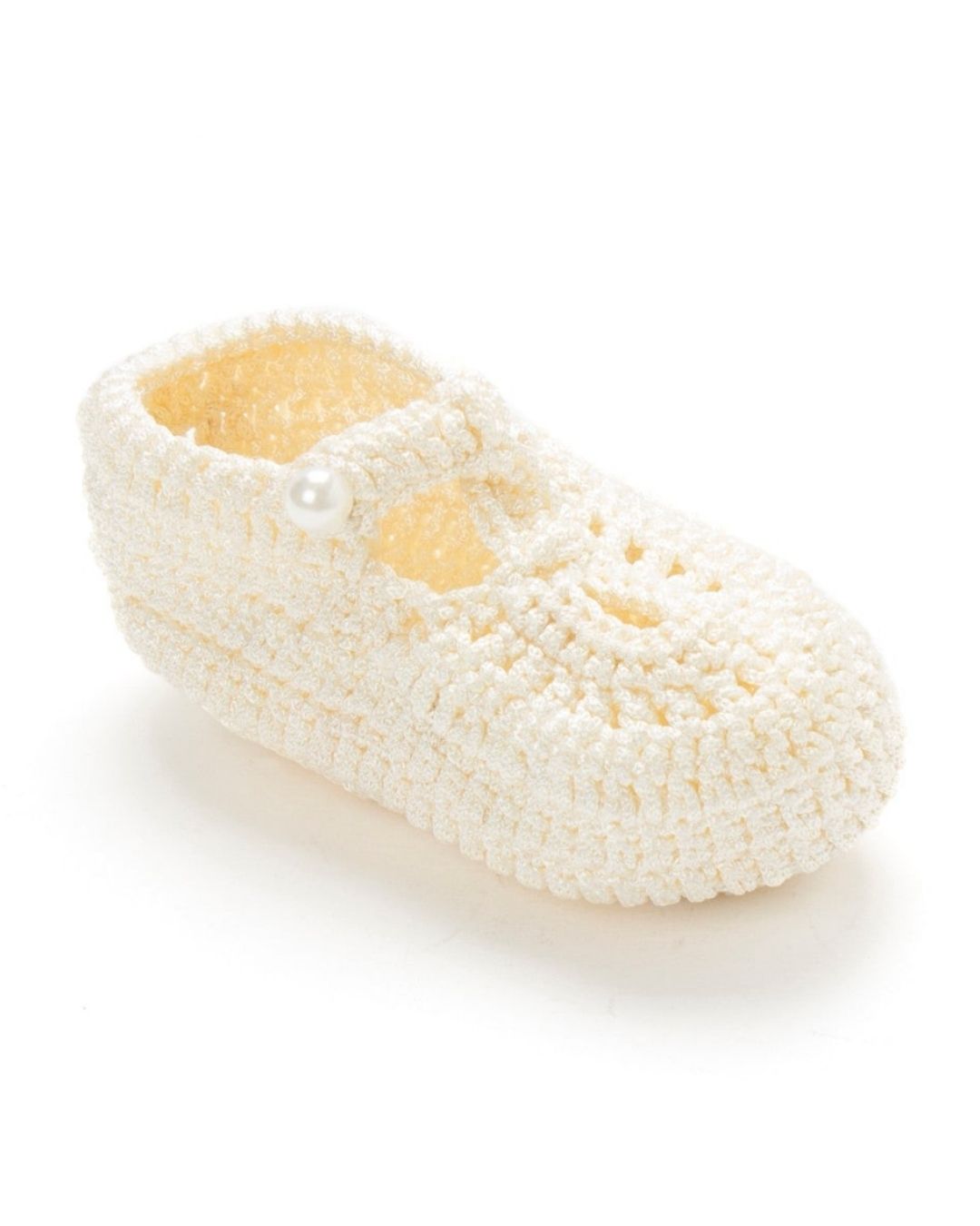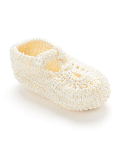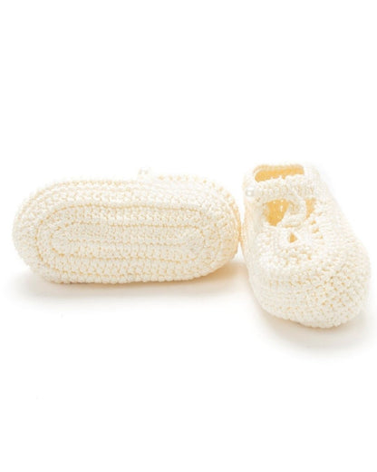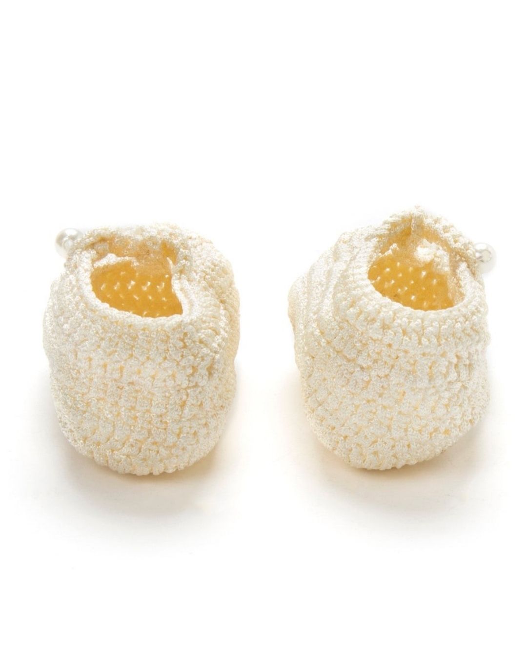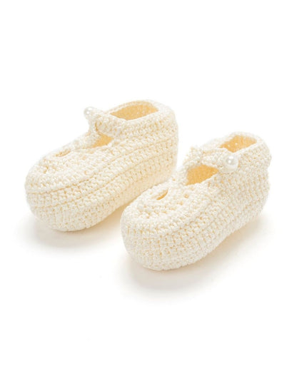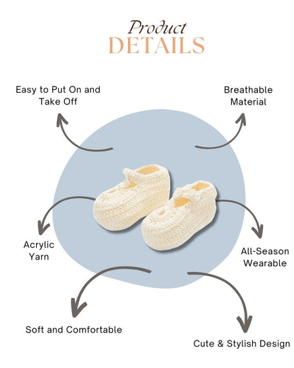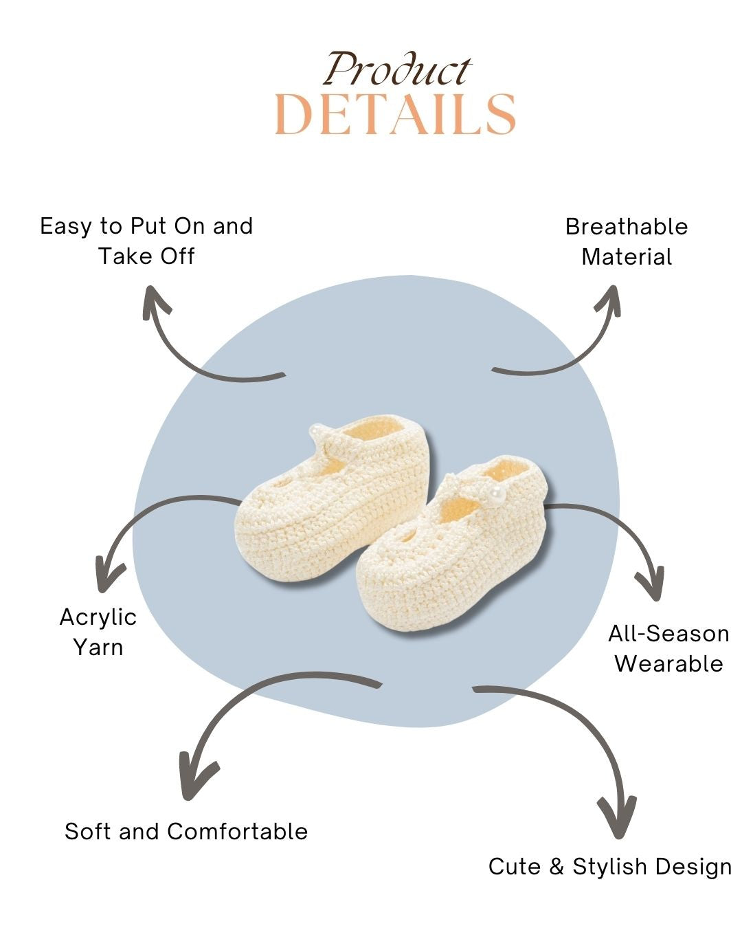 Funkrafts brings to you a beautiful and soft off white crochet baby booties. These are high on style and comfort, making it a great choice for the expecting mother's baby shower.