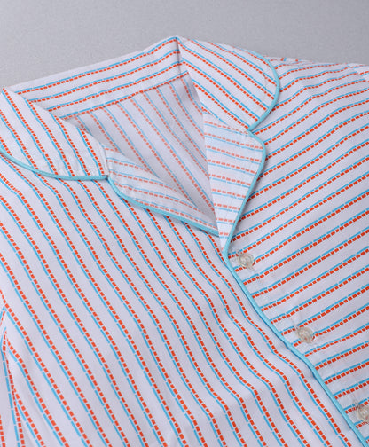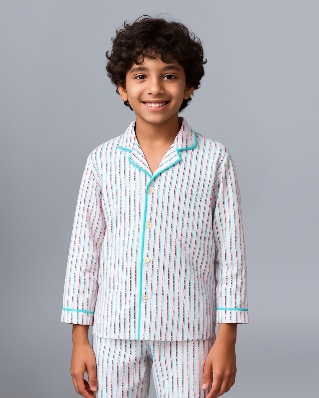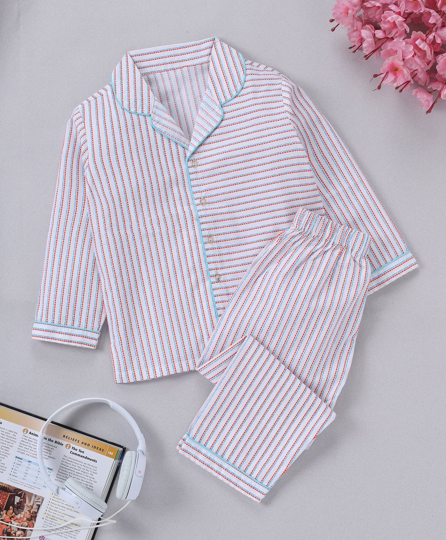 Multi-Color Stripe Vibe Collar Style Nightsuit for Kids