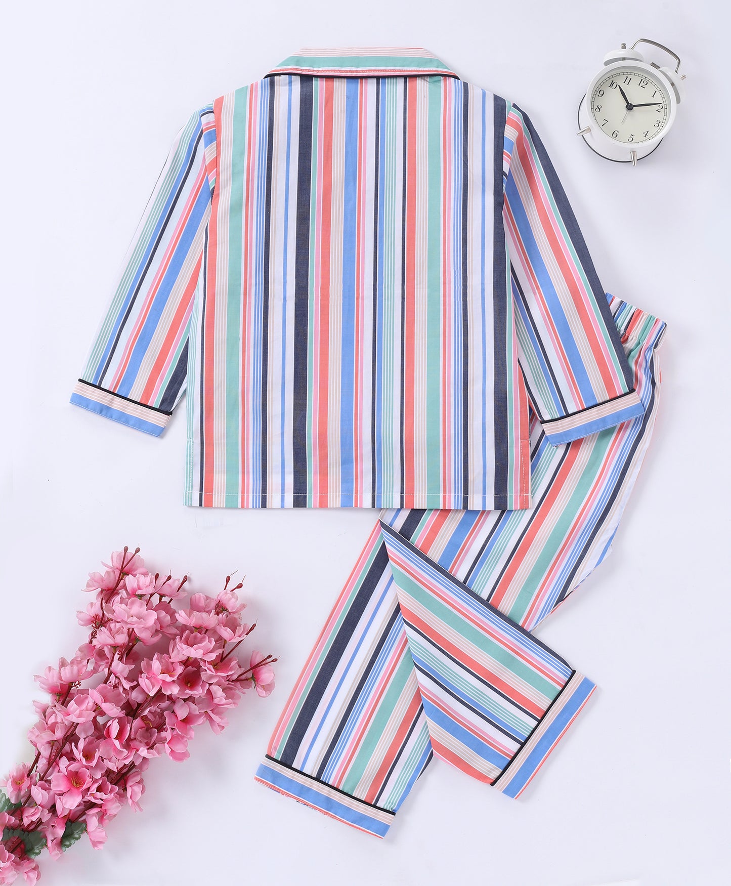 Multi-Color Stripe Vibe Collar Style Nightsuit for Kids