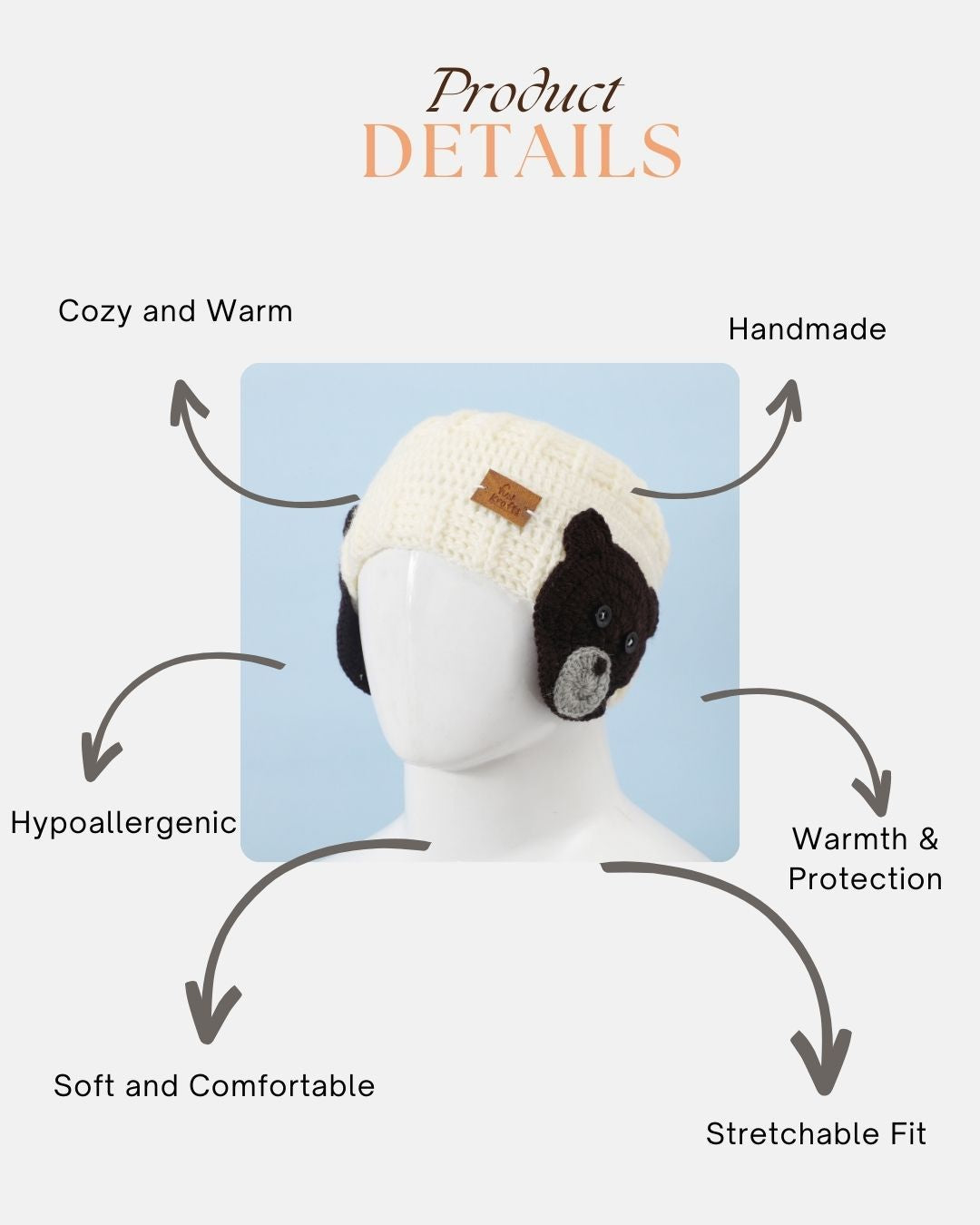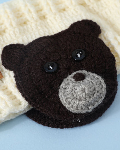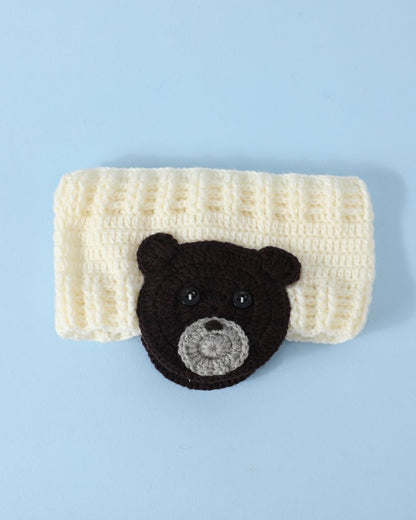 Offwhite & Brown Self Design Handmade Woollen Ear Warmer Muffs Headband for Kids
