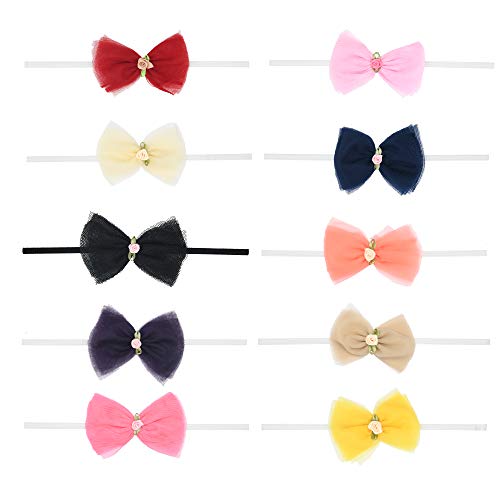 Pack of 10 Multicolor Bows Headbands for Girls