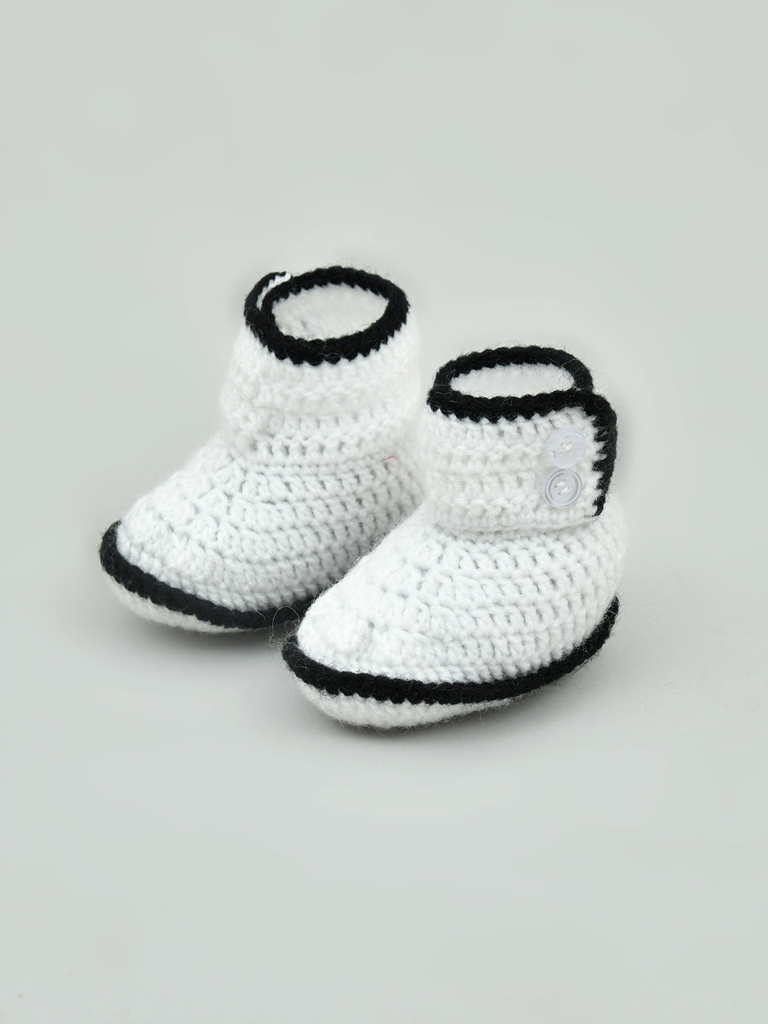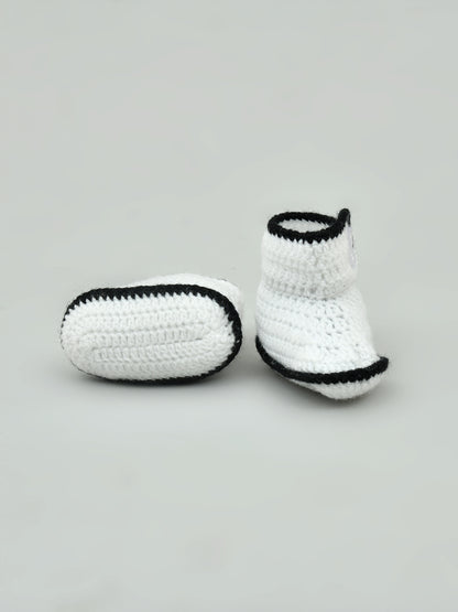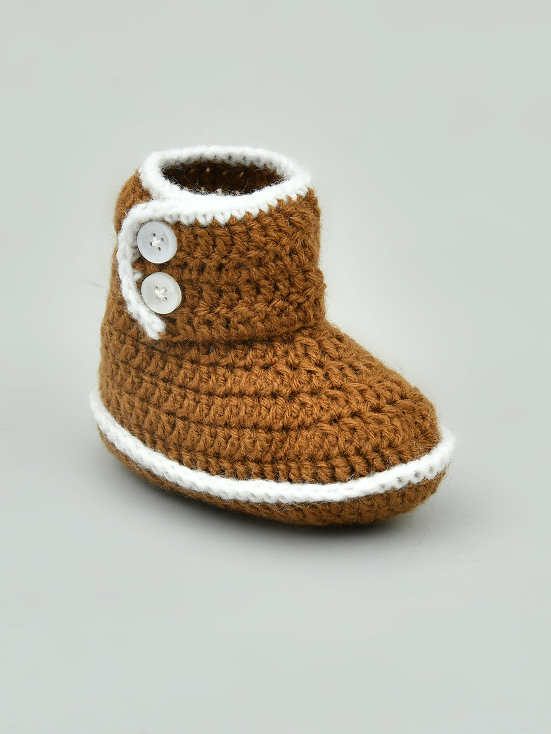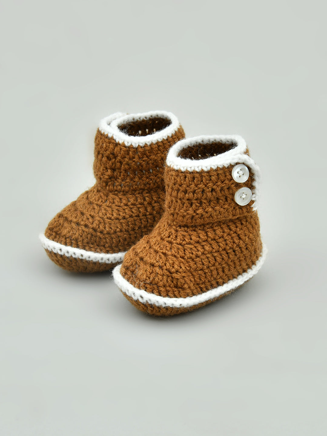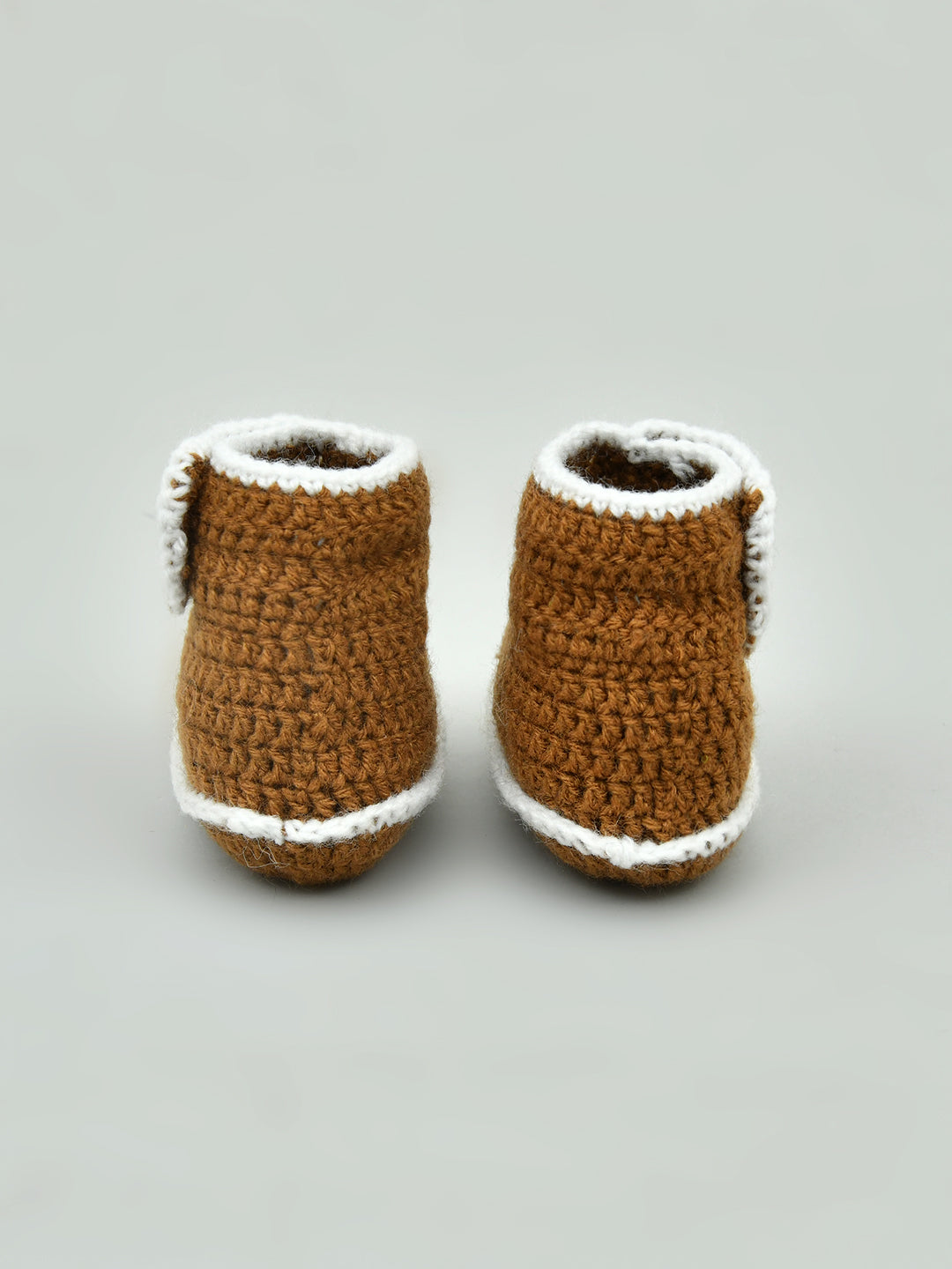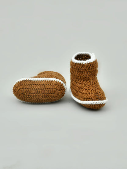 Pack of 2 Brown & White Handmade Woollen Crochet Baby Booties for Girls