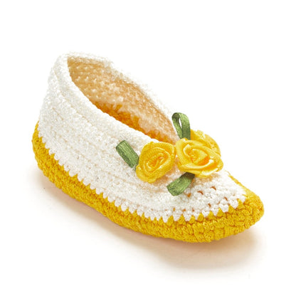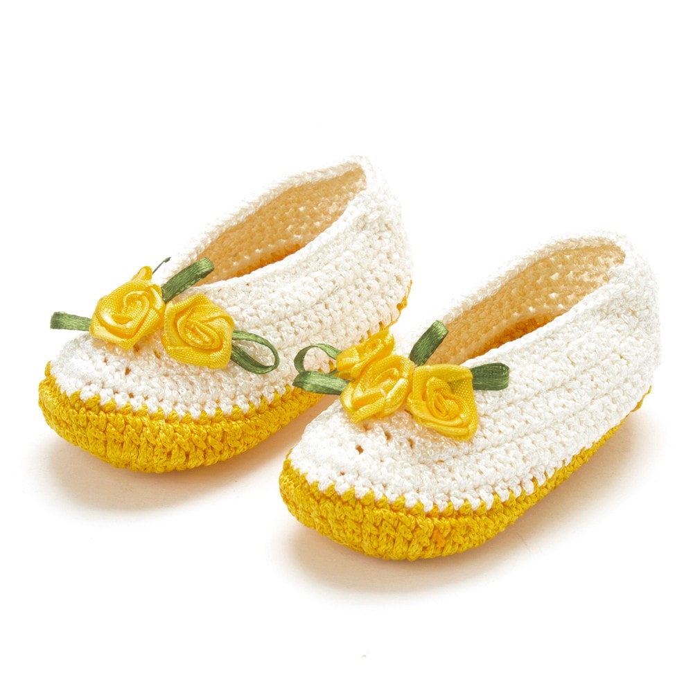 Pack of 2 White & Yellow Handmade Crochet Baby Booties for Girls