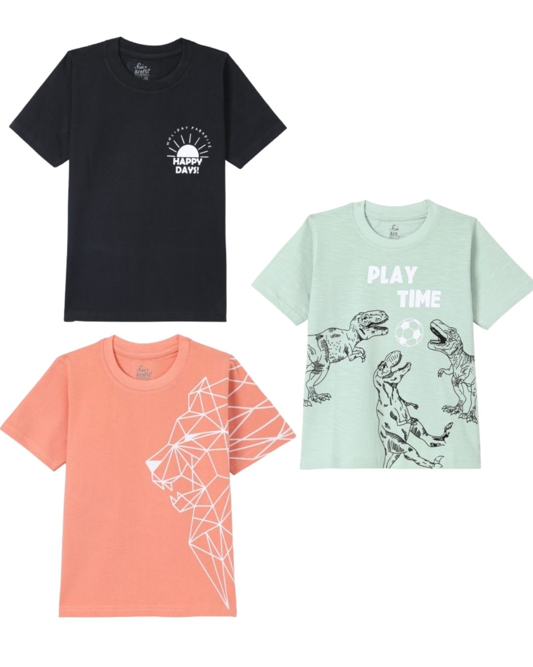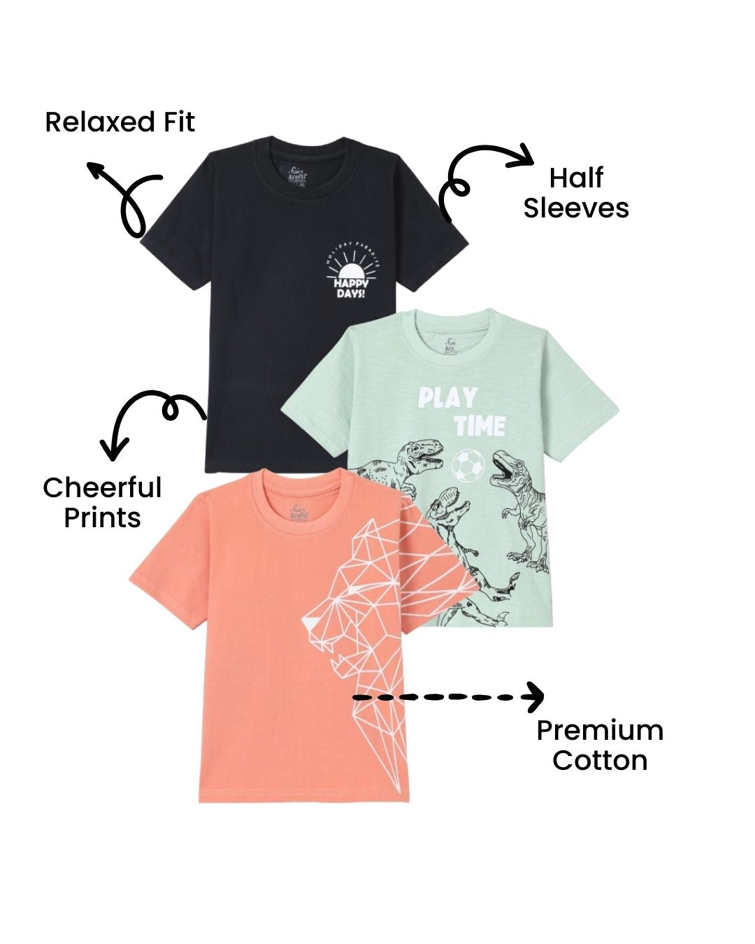 Pack of 3 Premium Cotton Half Sleeves Printed T-Shirt for Boys - Black, Peach & Green