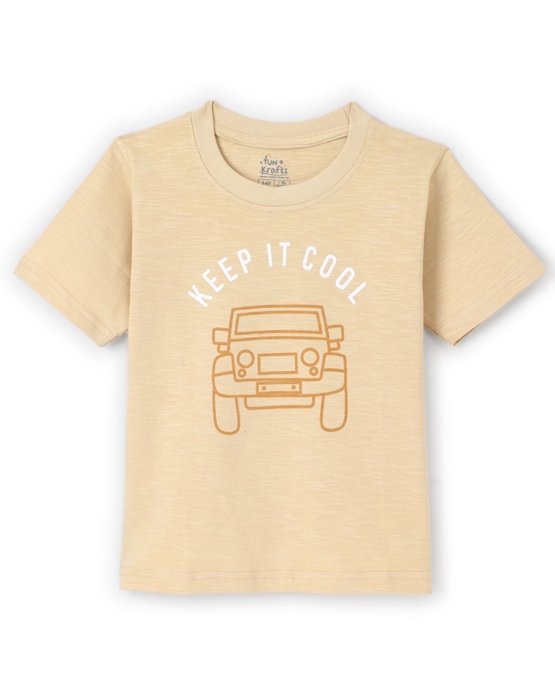 Give your little one the perfect blend of style and comfort with Funkrafts Boys Premium Cotton Half Sleeves Pack of 3 Printed T-Shirts in yellow, blue, and green. Each t-shirt for boys in this pack is designed with soft, breathable cotton to ensure maximum comfort throughout the day. The bright colors and fun prints make these boys t-shirts perfect for any occasion, from playdates to casual outings. These t-shirts for boys are easy to mix and match with shorts, jeans, or joggers, offering a versatile wardrobe option. Made to last, these boys t-shirts are durable and retain their softness and vibrancy even after multiple washes. The perfect fit and lightweight design of each t-shirt for boys ensure that your child can move freely and enjoy their day in comfort. Whether you're heading out for a family gathering or simply enjoying a day at home, these boys t-shirts will keep your child stylish and comfortable all day long.
