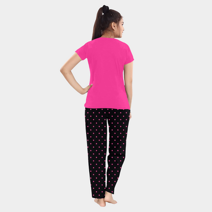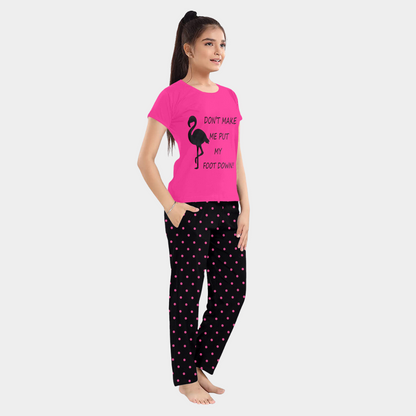 Pink & Black Flamingo Printed Cotton Night Suit for Girls