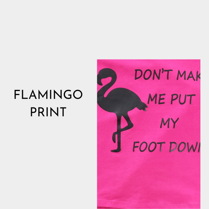 The flamingo design is stylish, and the night suit is very comfortable. My daughter loves wearing this t-shirt & pyjama set every night.