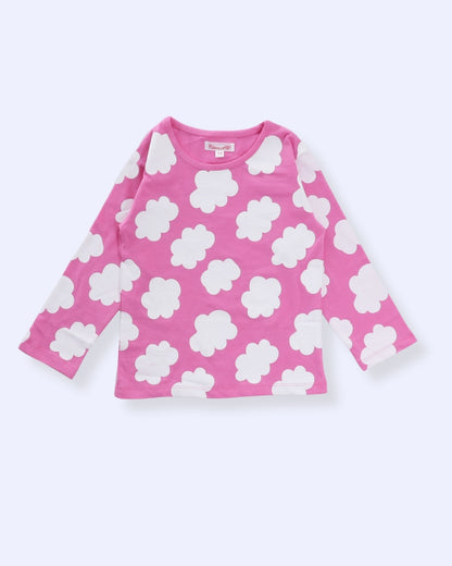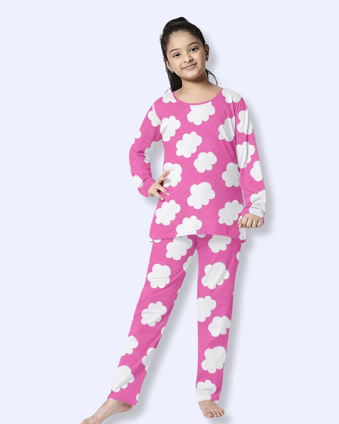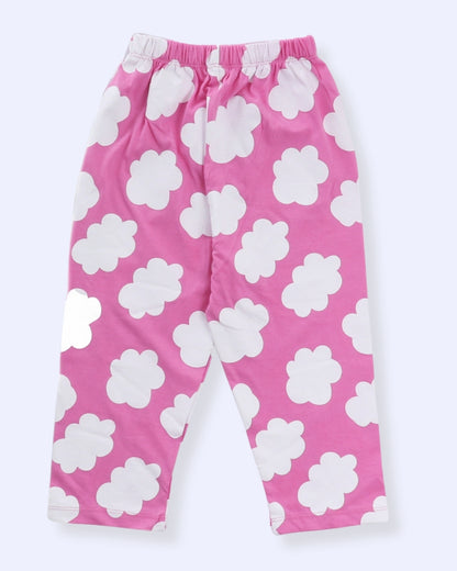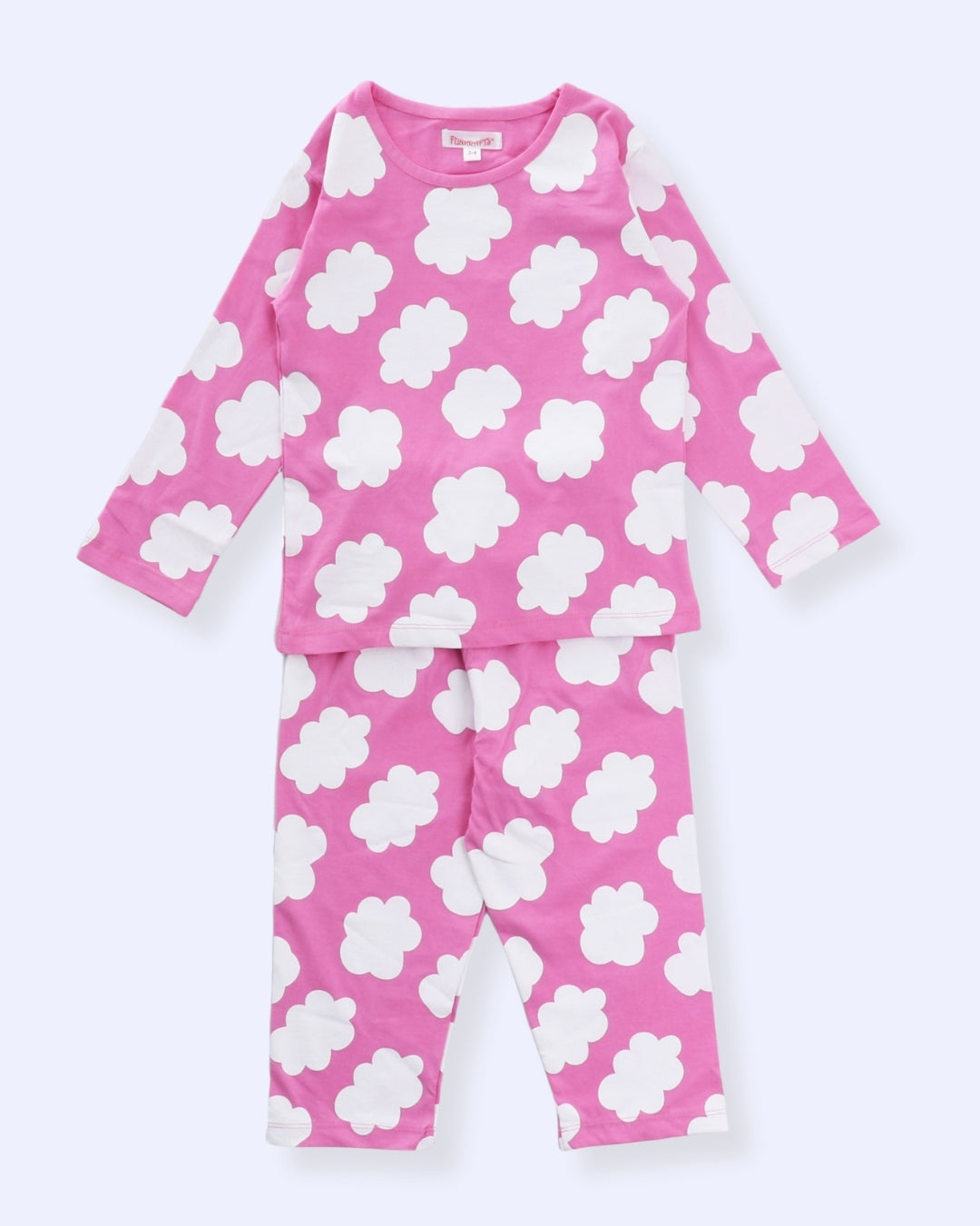 Add this pretty pink nightsuit by Funkrafts to your girls closet. This cloud print nightwear for girls is perfect for a goodnight sleep. Let her float away on the clouds and dream!