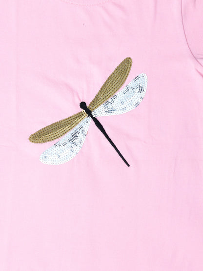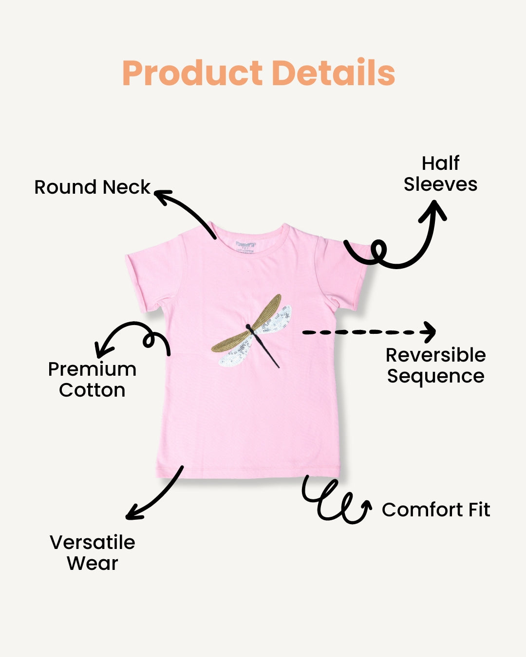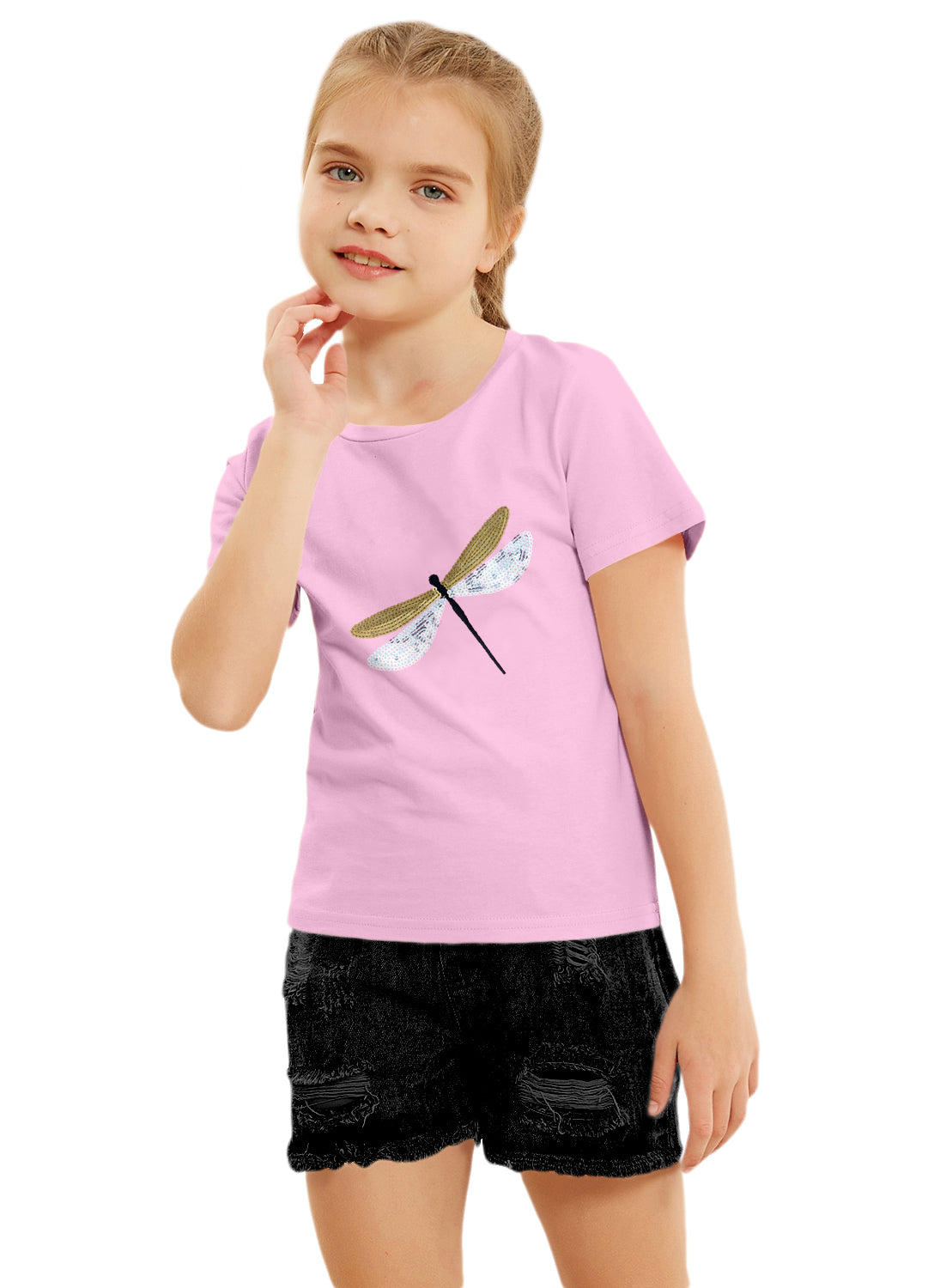 This t-shirt is perfect for any occasion. The sequin details add a fun touch, and the pink color is vibrant. My daughter wears it all the time!