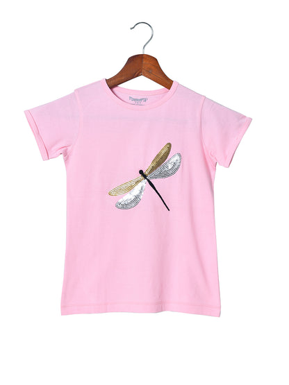 She’ll love this fun and stylish girls pink sequin pure cotton T-shirt by Funkrafts. This top is perfect for a special occasion or just a day out with friends. It's sure to add some fun to her wardrobe.