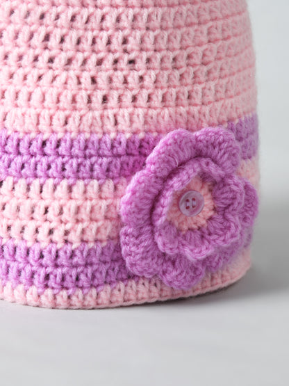 Keep your girls warm in style with this handmade woollen cap with a stylish flower. Soft wool will keep their heads and ears cozy, while the fun designs add a touch of personality. With so many to choose from, you'll have a hard time picking just one!