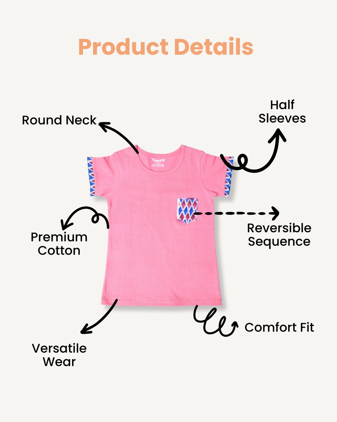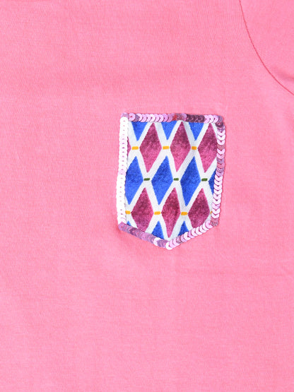 She’ll love this fun and stylish girls pink sequin pure cotton T-shirt by Funkrafts. This top is perfect for a special occasion or just a day out with friends. It's sure to add some fun to her wardrobe.