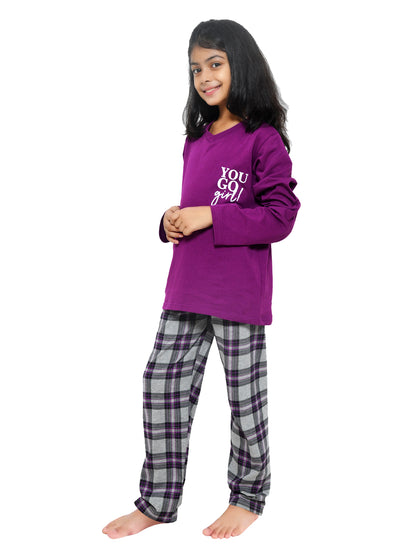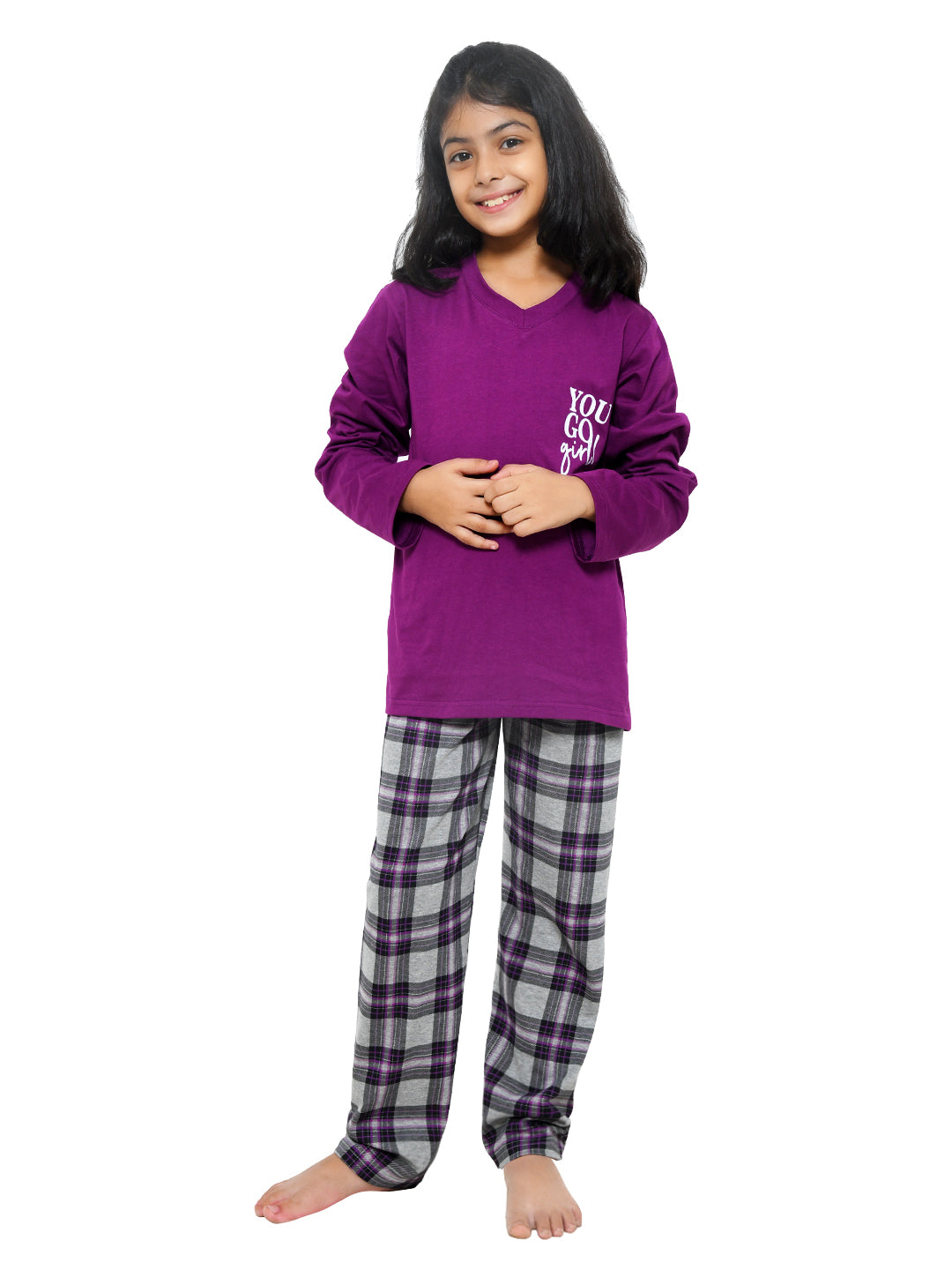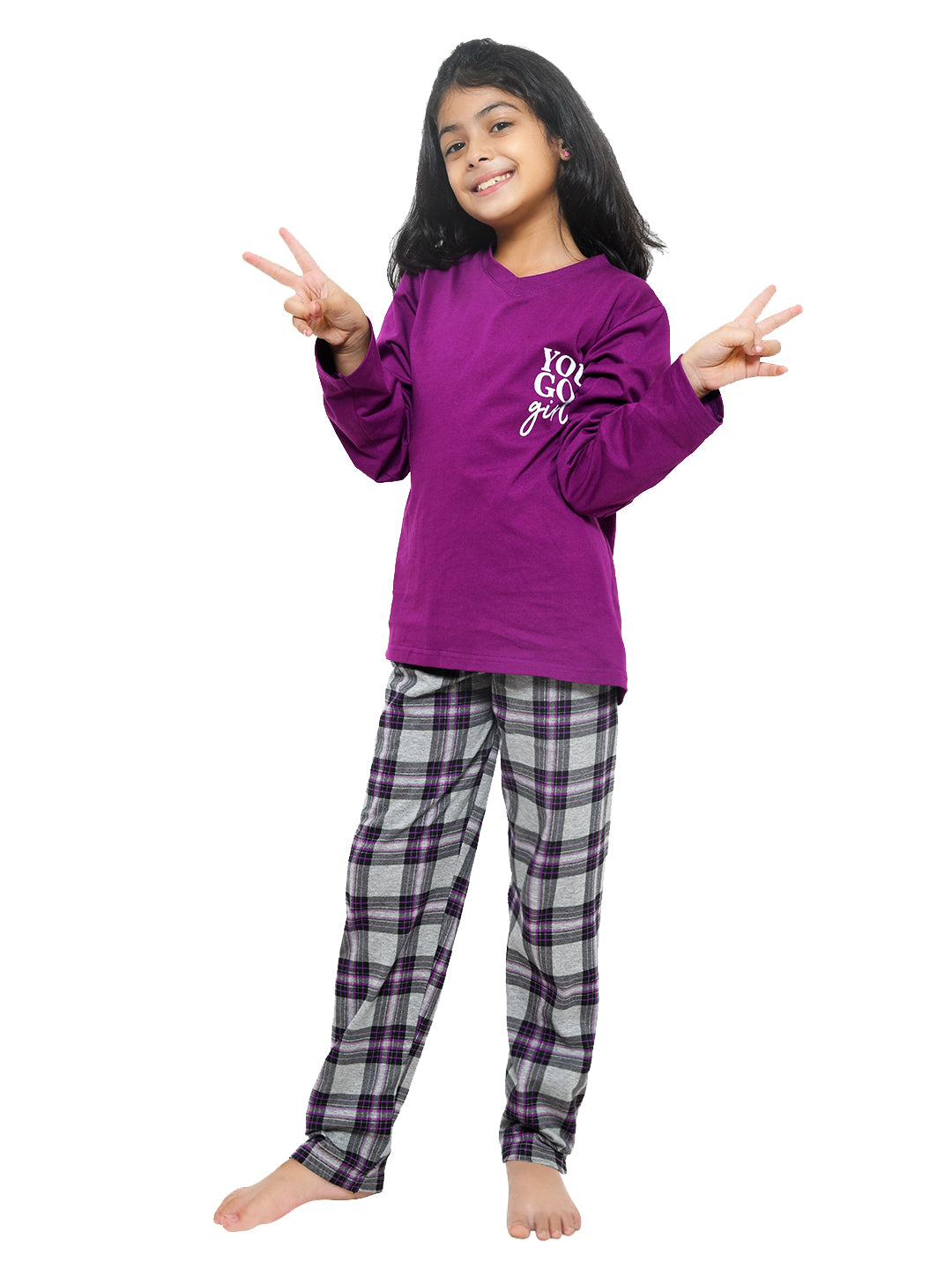 My daughter loves this purple typography printed nightwear. The cotton fabric is soft and comfy, perfect for her bedtime routine.