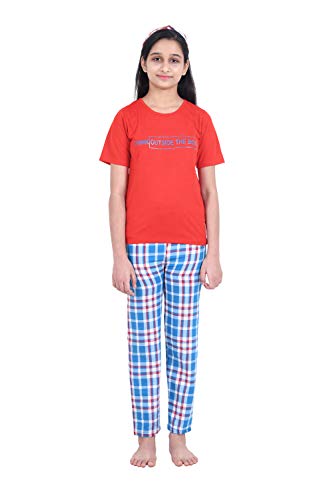 Think outside the box with this red and blue checks print night suit for girls by Funkrafts. Made with 100% cotton and full-length elasticated bottoms this nightwear guarantees a good night sleep.