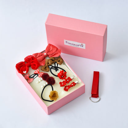Red Hair Accessories for Girls Gift Box ( Pack of 13 )