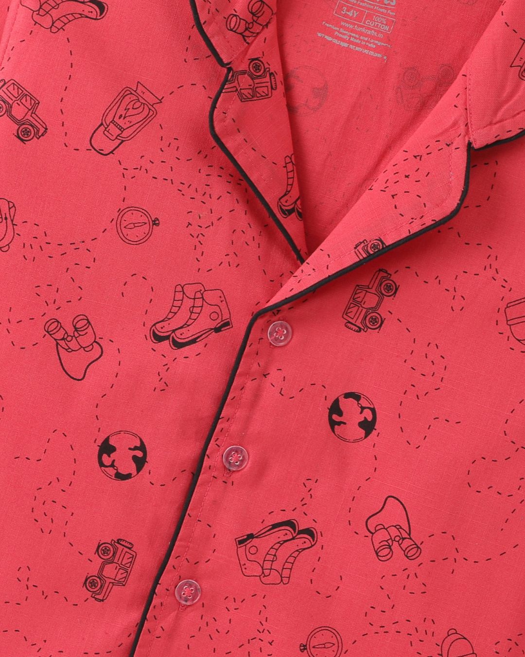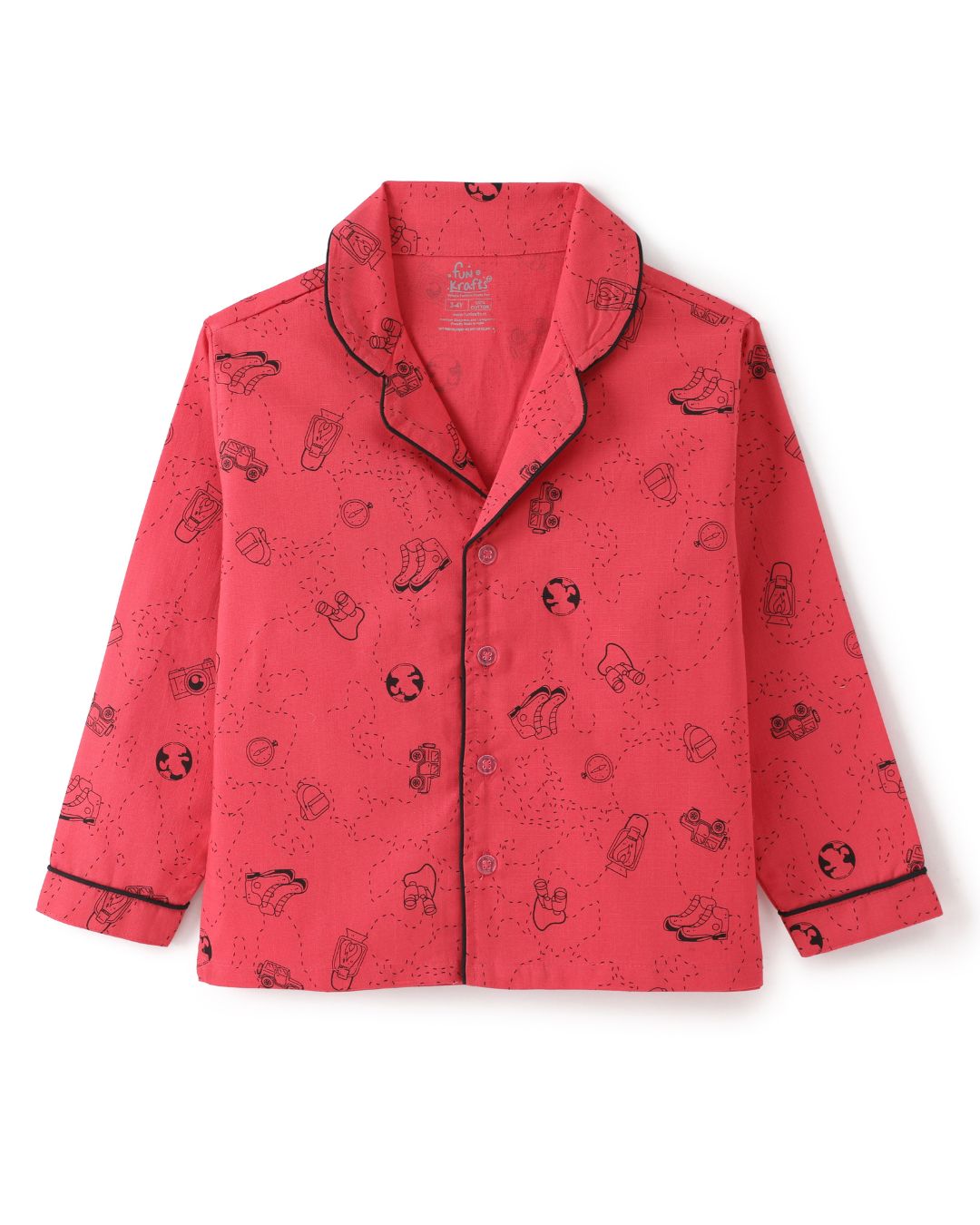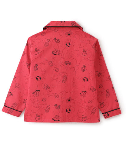 Red Premium Cotton Full Sleeves Car Printed Collar Style Nightsuit for Kids