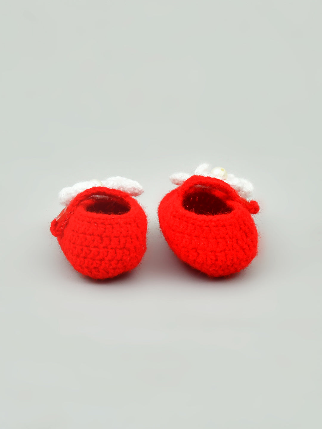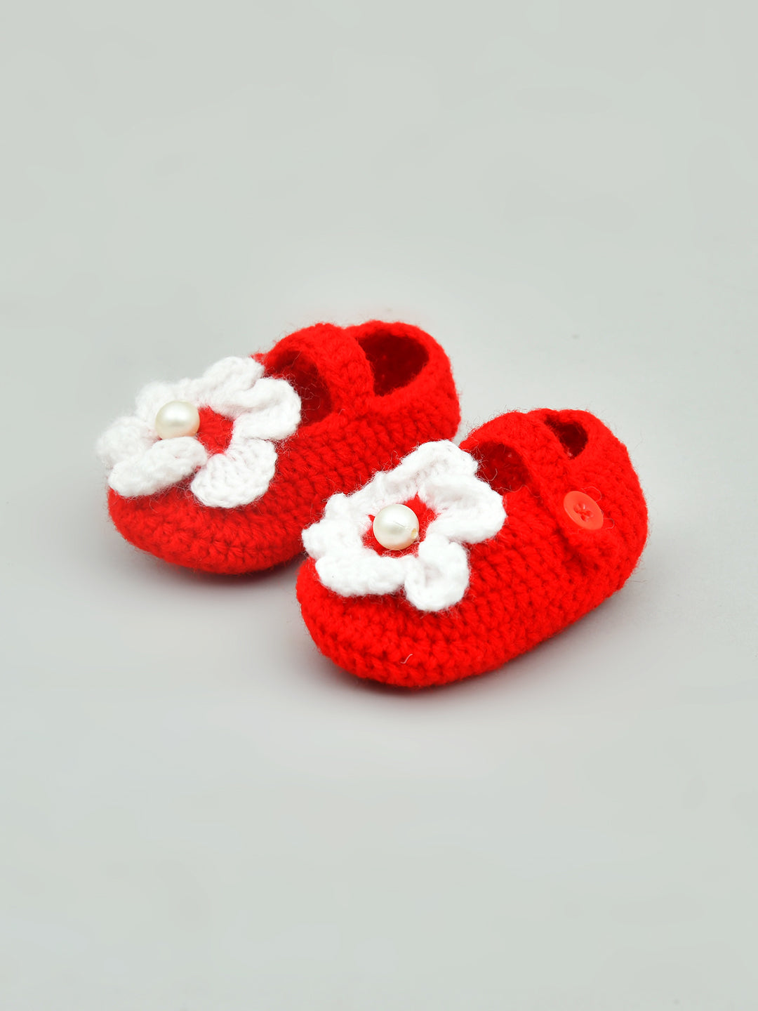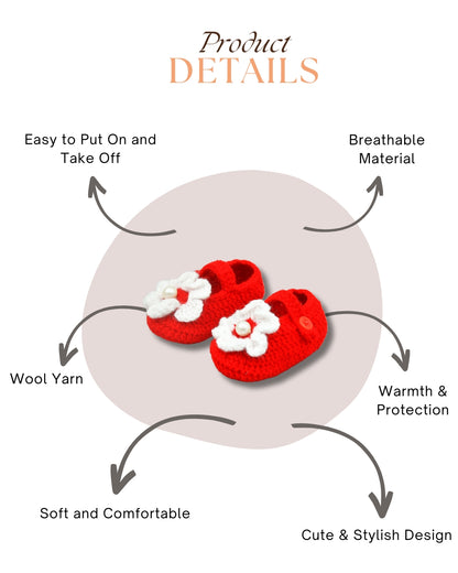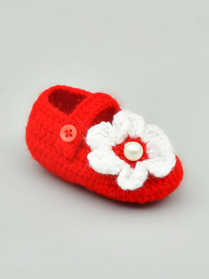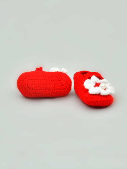 Red & White Flowered Crochet Baby Booties for Girls