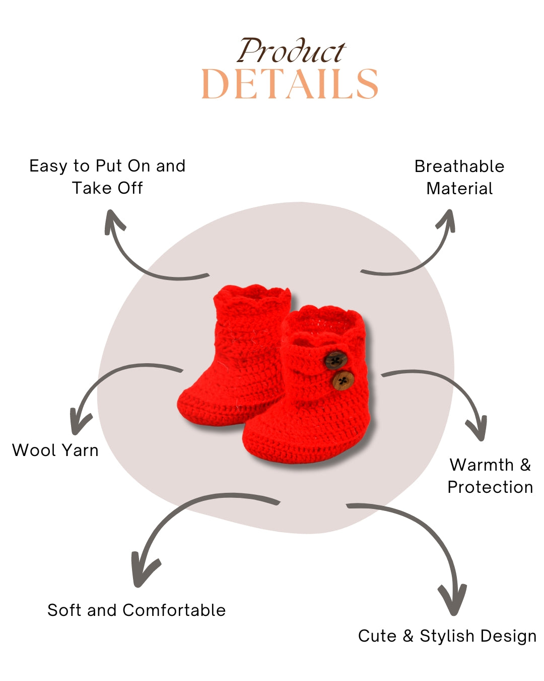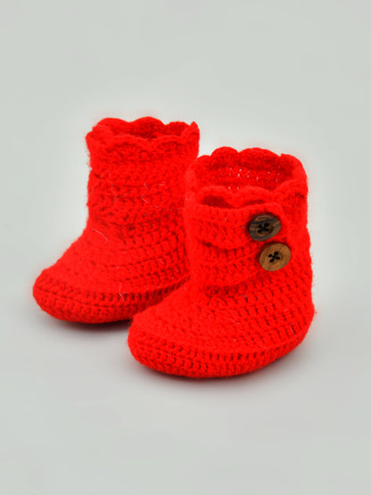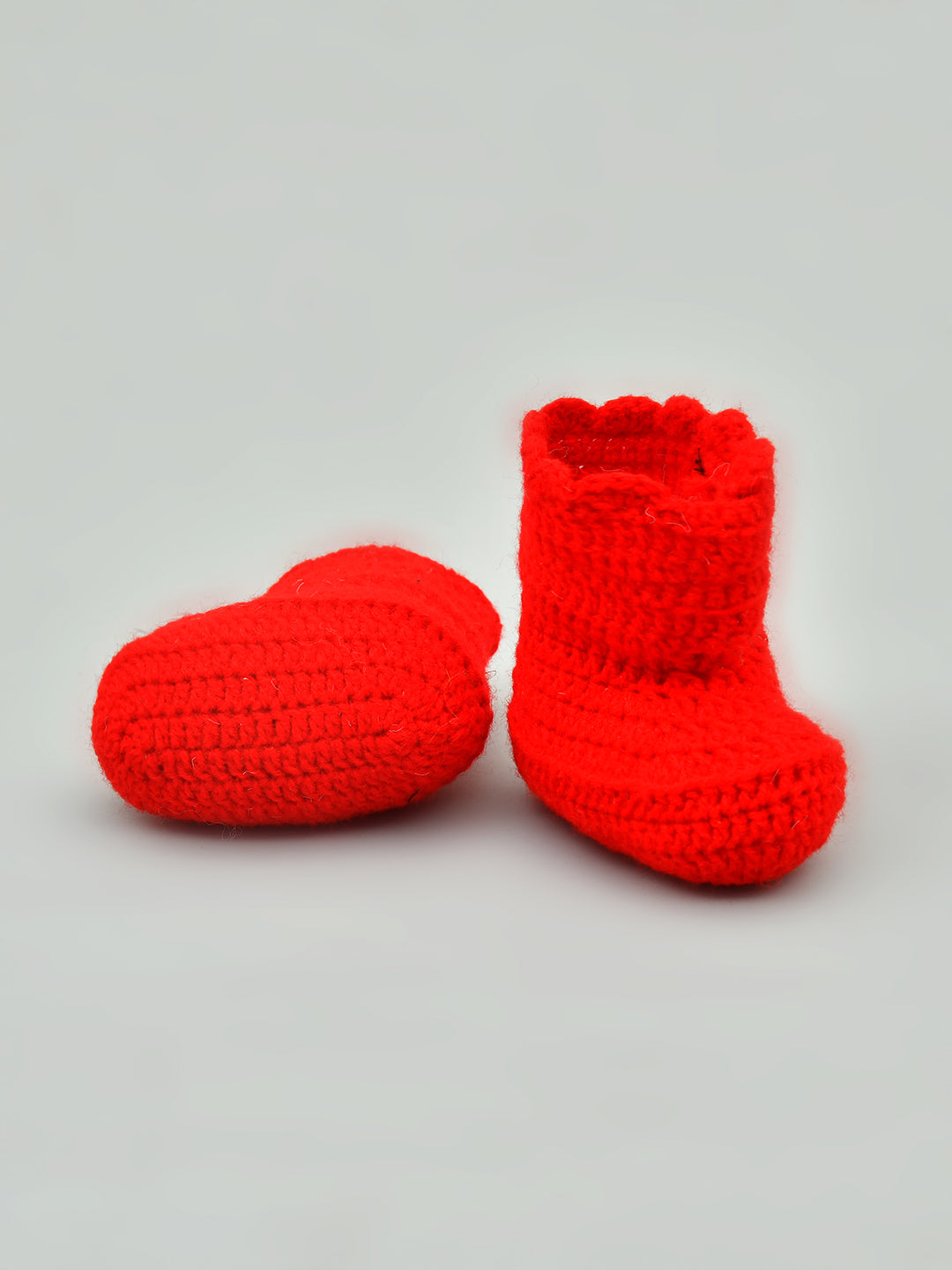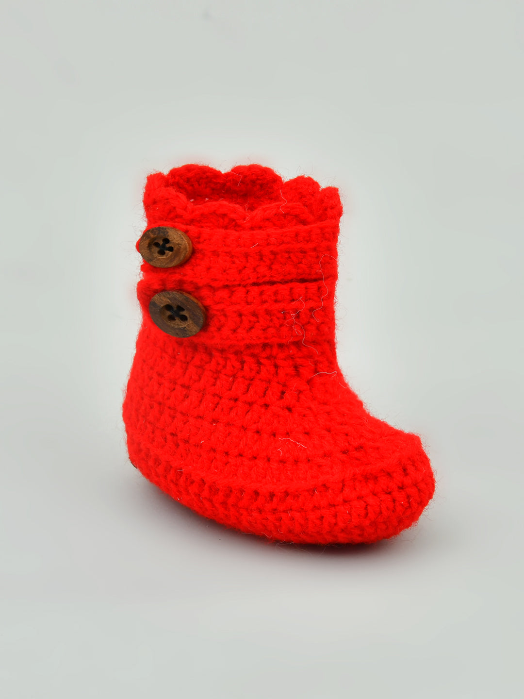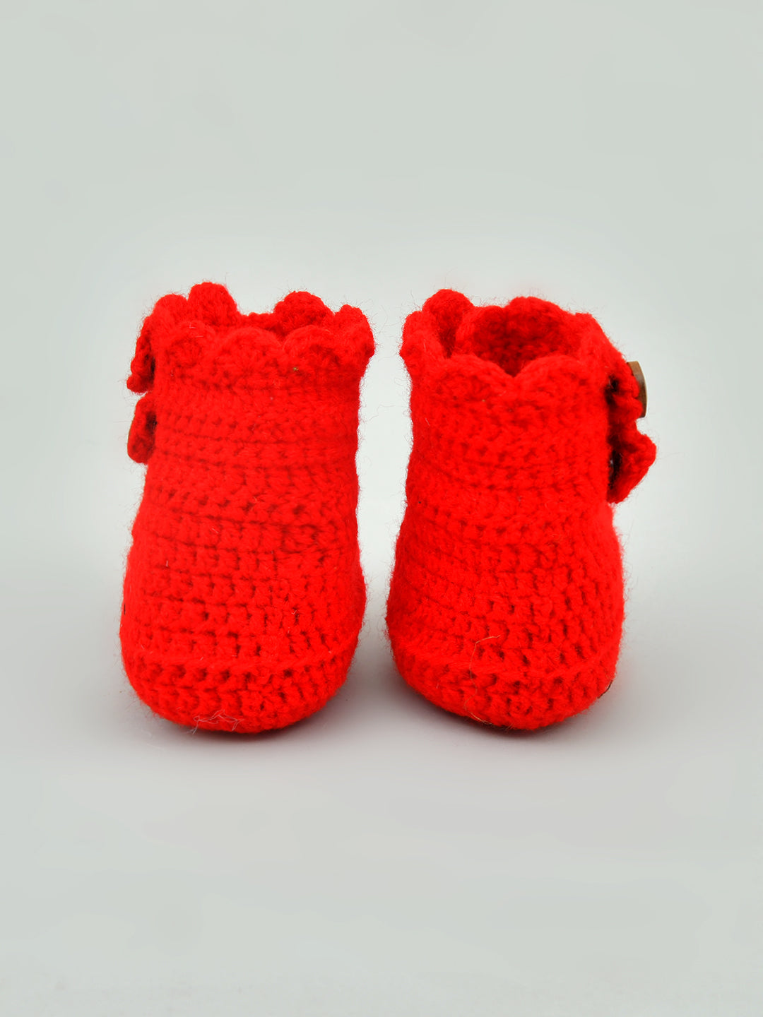 The red woollen booties are perfect for winter. They are warm, soft, and fit well, keeping my baby’s feet toasty.