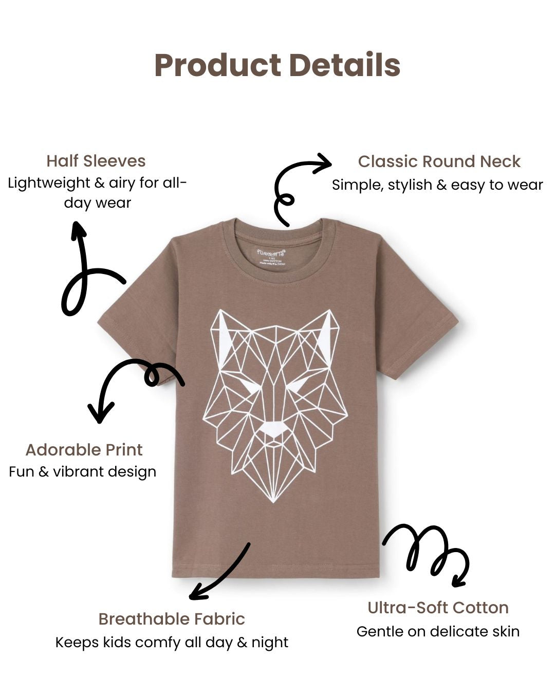 Tiger Printed Premium Cotton Half Sleeves Brown T-Shirt for Boys