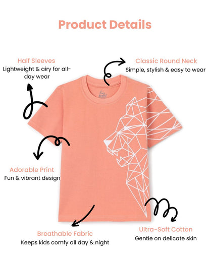 Let your child roar in style with this t-shirt for boys, featuring a bold tiger print on soft premium cotton. Designed for ultimate comfort, this breathable boys t-shirt ensures all-day ease for active kids. The peach color adds a fresh and stylish touch, making it a great pick for everyday wear. Whether paired with jeans, joggers, or shorts, this t-shirt for boys is a versatile addition to any wardrobe. The durable stitching and high-quality fabric ensure it remains in perfect condition wash after wash. The half-sleeves allow freedom of movement, keeping kids comfortable in every season. Perfect for casual outings, playdates, or lounging at home, this boys t-shirt combines fashion and comfort effortlessly. Give your little one a stylish edge with this trendy t-shirt for boys, designed for both fun and function. A must-have boys t-shirt for adventurous kids who love cool prints.