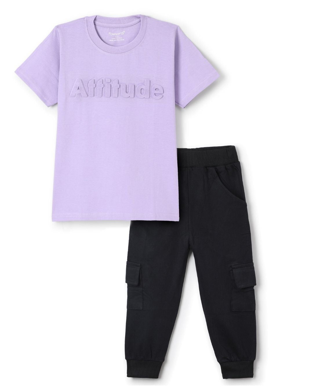 For boys who love a pop of color, this jogger set for boys features a vibrant purple typographic T-shirt paired with black joggers with pockets. Made from premium cotton, this t-shirt & jogger for boys is designed to provide maximum comfort for both active days and relaxed moments. Whether your child is heading out for a fun-filled day or lounging at home, this clothing set for boys offers the perfect mix of style and comfort. The joggers feature functional pockets, making them ideal for carrying small essentials. Perfect for casual wear or as loungewear for boys, this set is also a great option for a trendy airport look for boys, ensuring he stays stylish during travel. The bold colors and practical design make this jogger set for boys an essential addition to his wardrobe, providing versatility for various occasions.