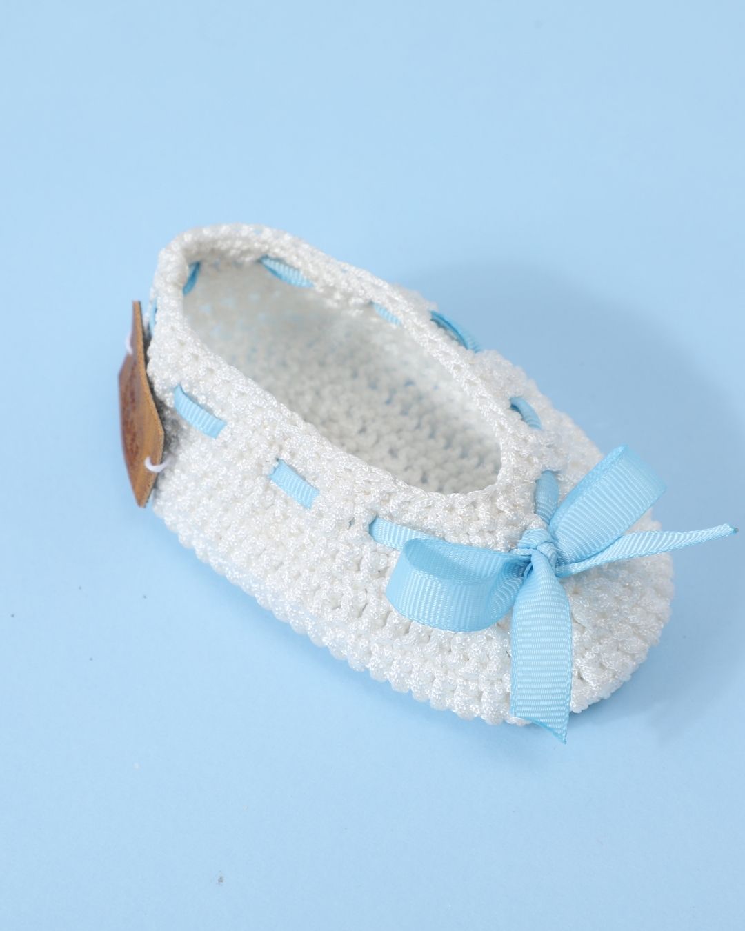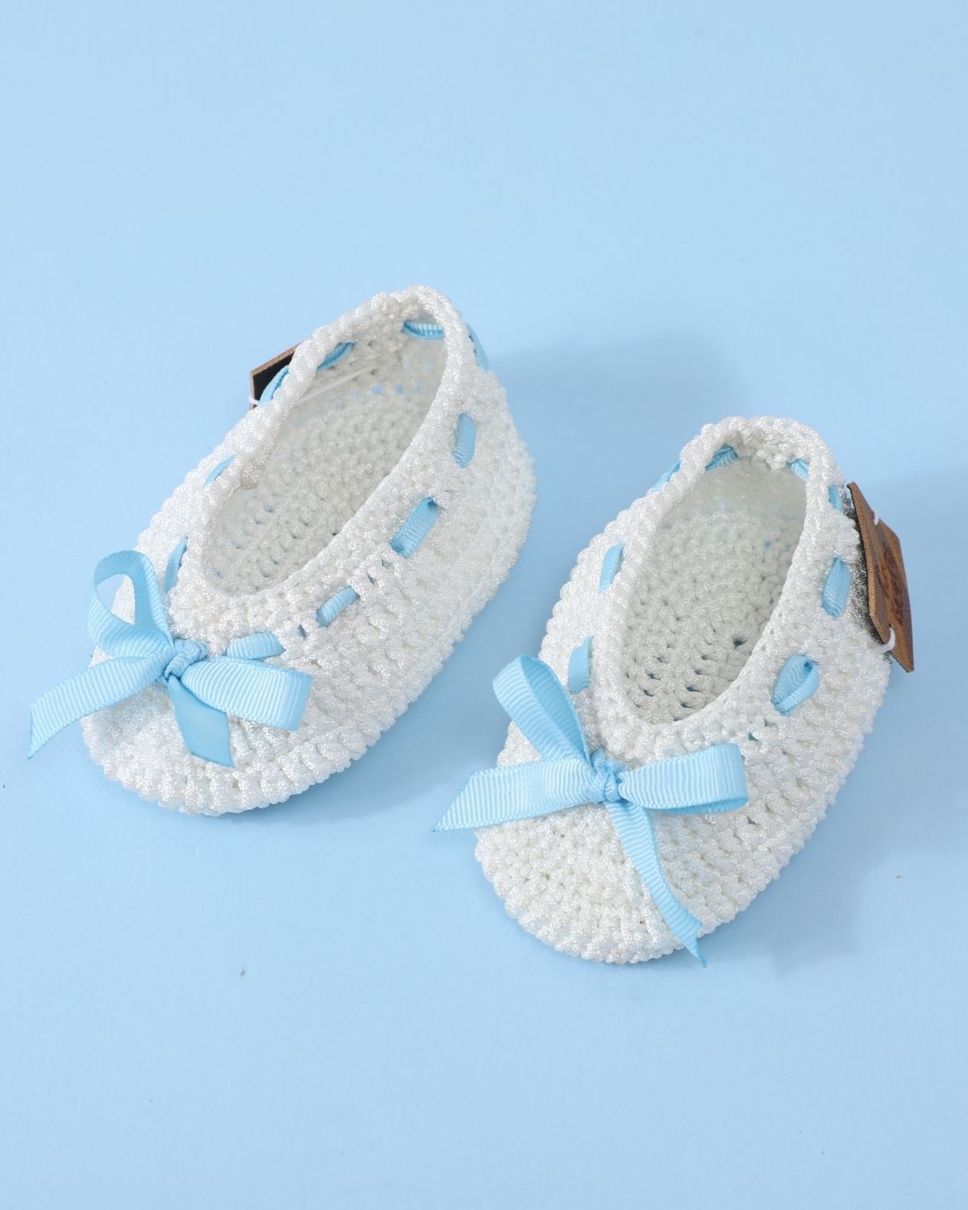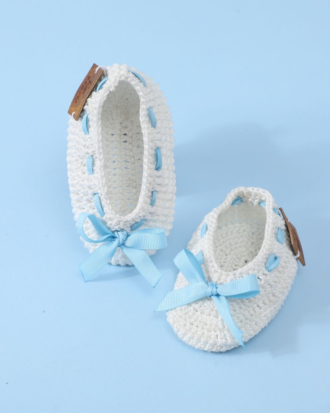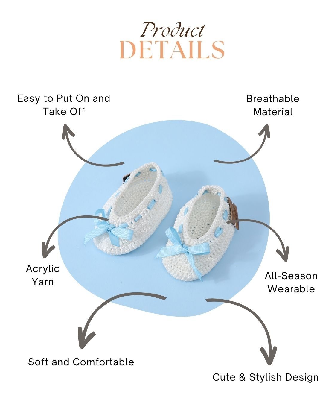 White & Blue Handmade Crochet Baby Infant Girl Booties