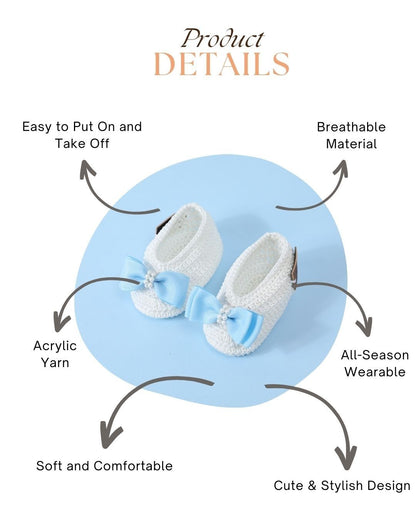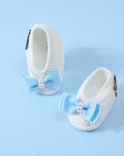 White & Blue Handmade Crochet Baby Infant Girl Booties
