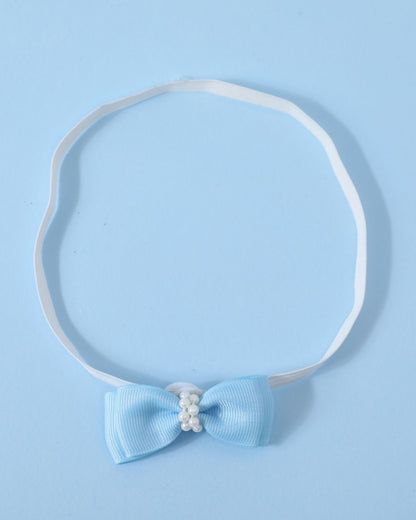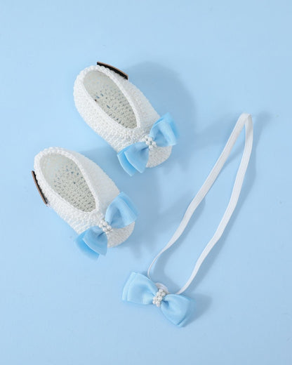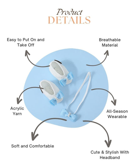 White & Blue Handmade Crochet Baby Infant Girl Booties With Headband