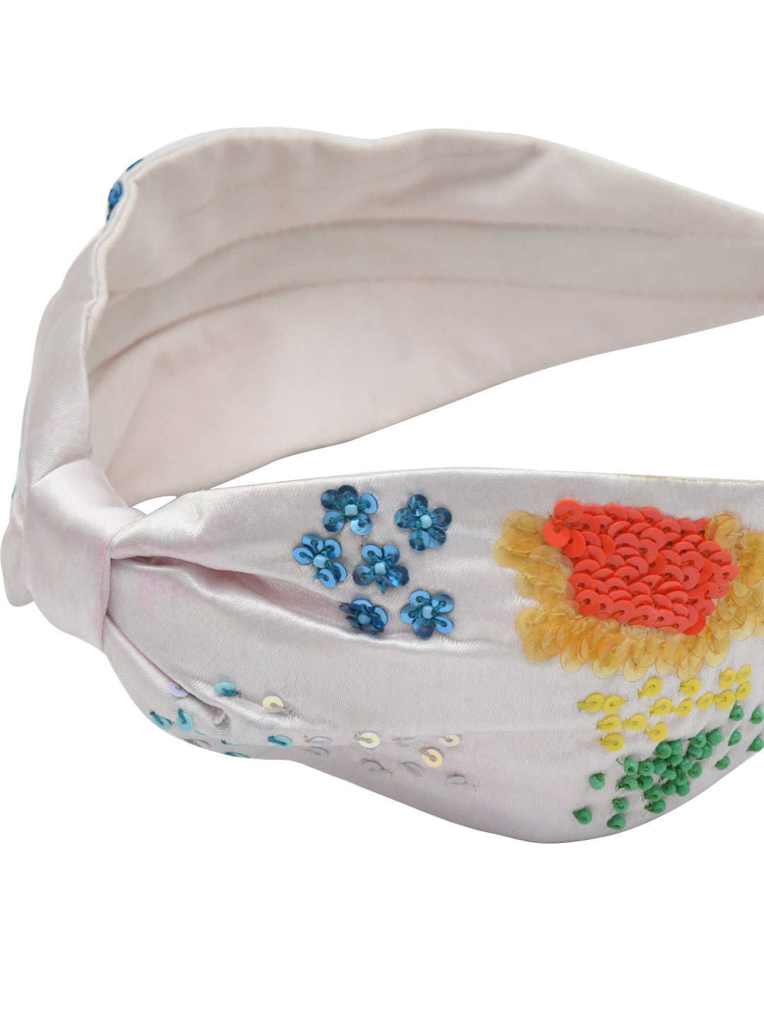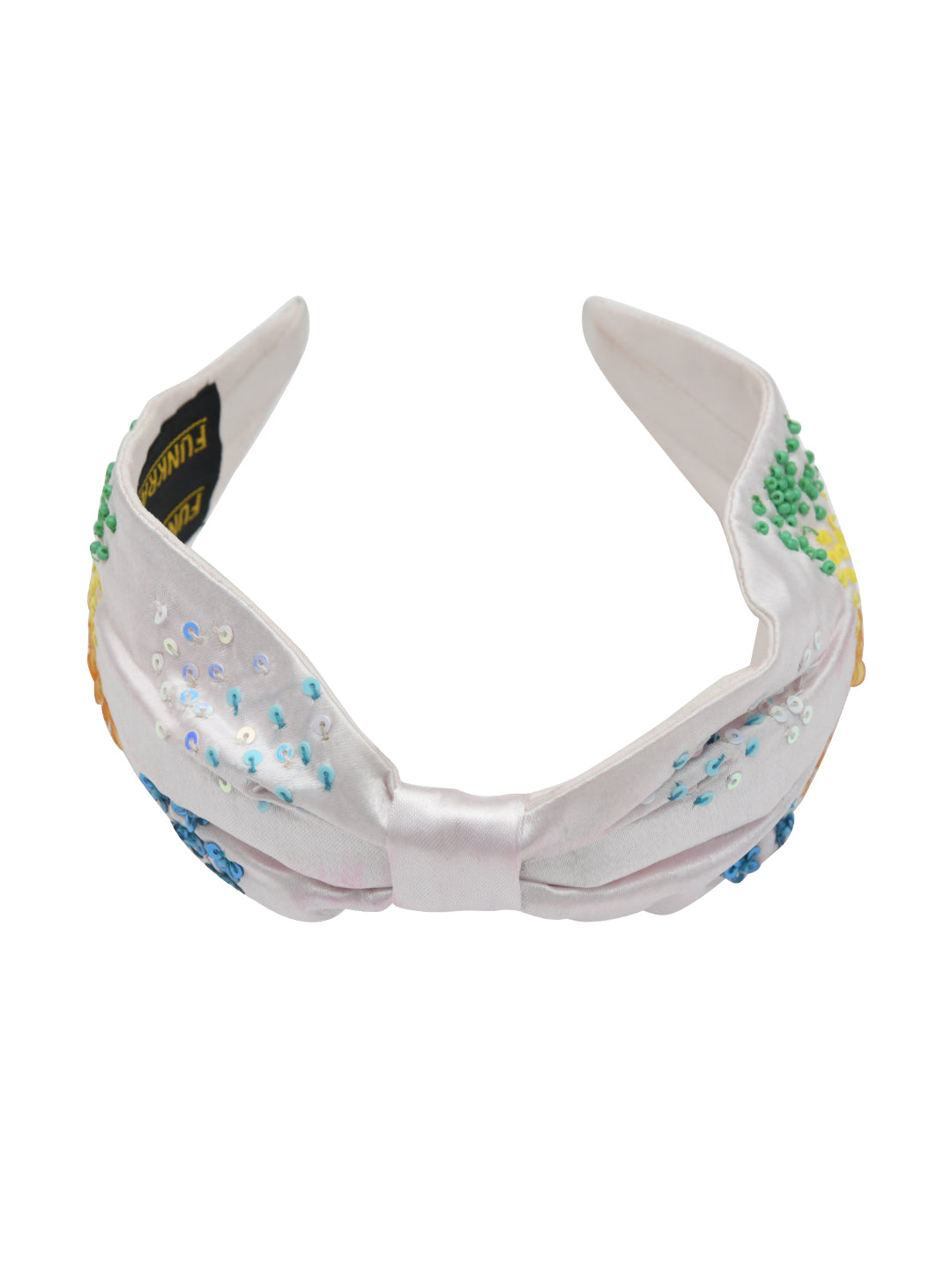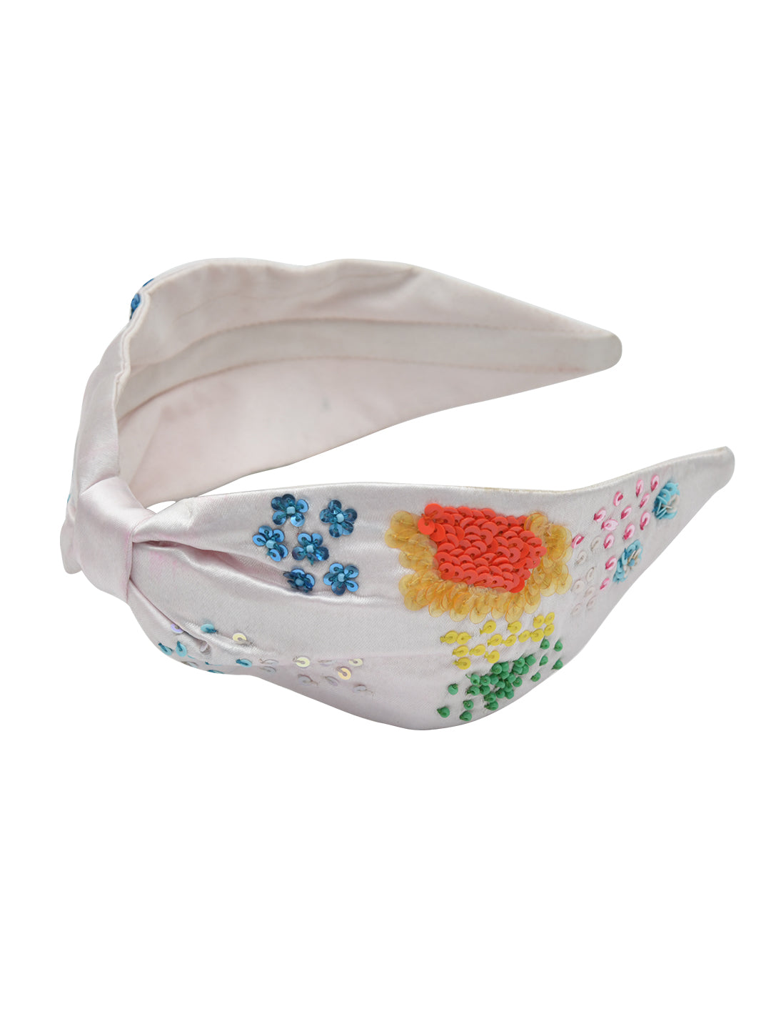 White Embroidered Knotted Hair Band for Girls
