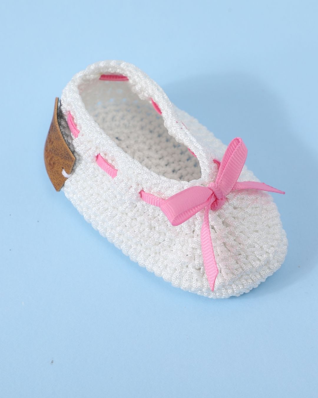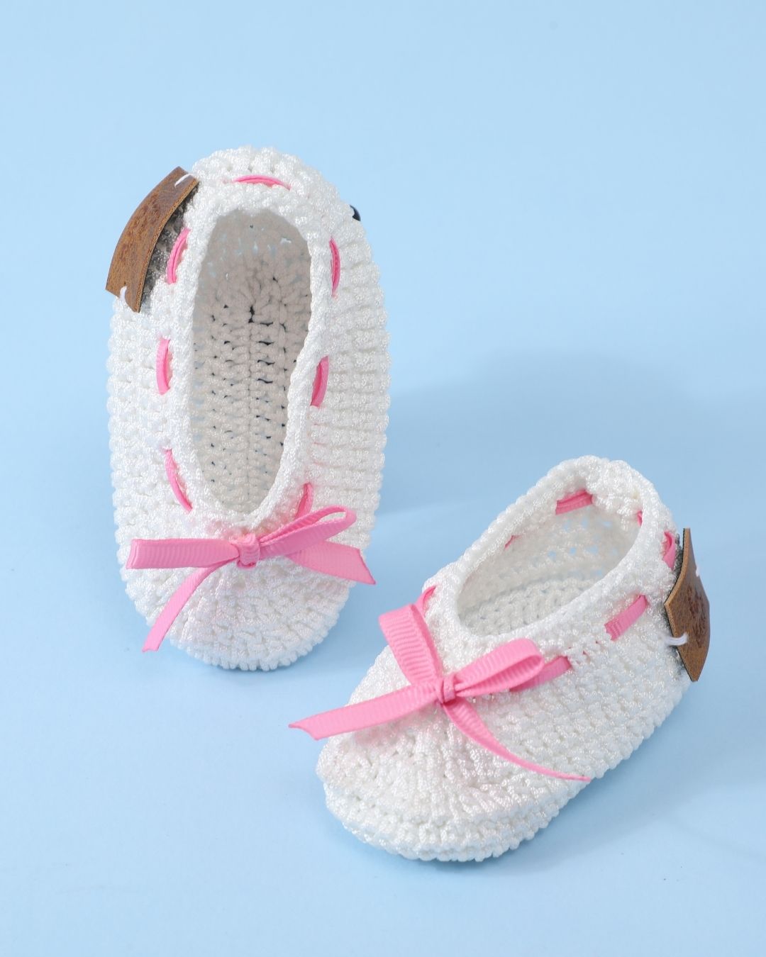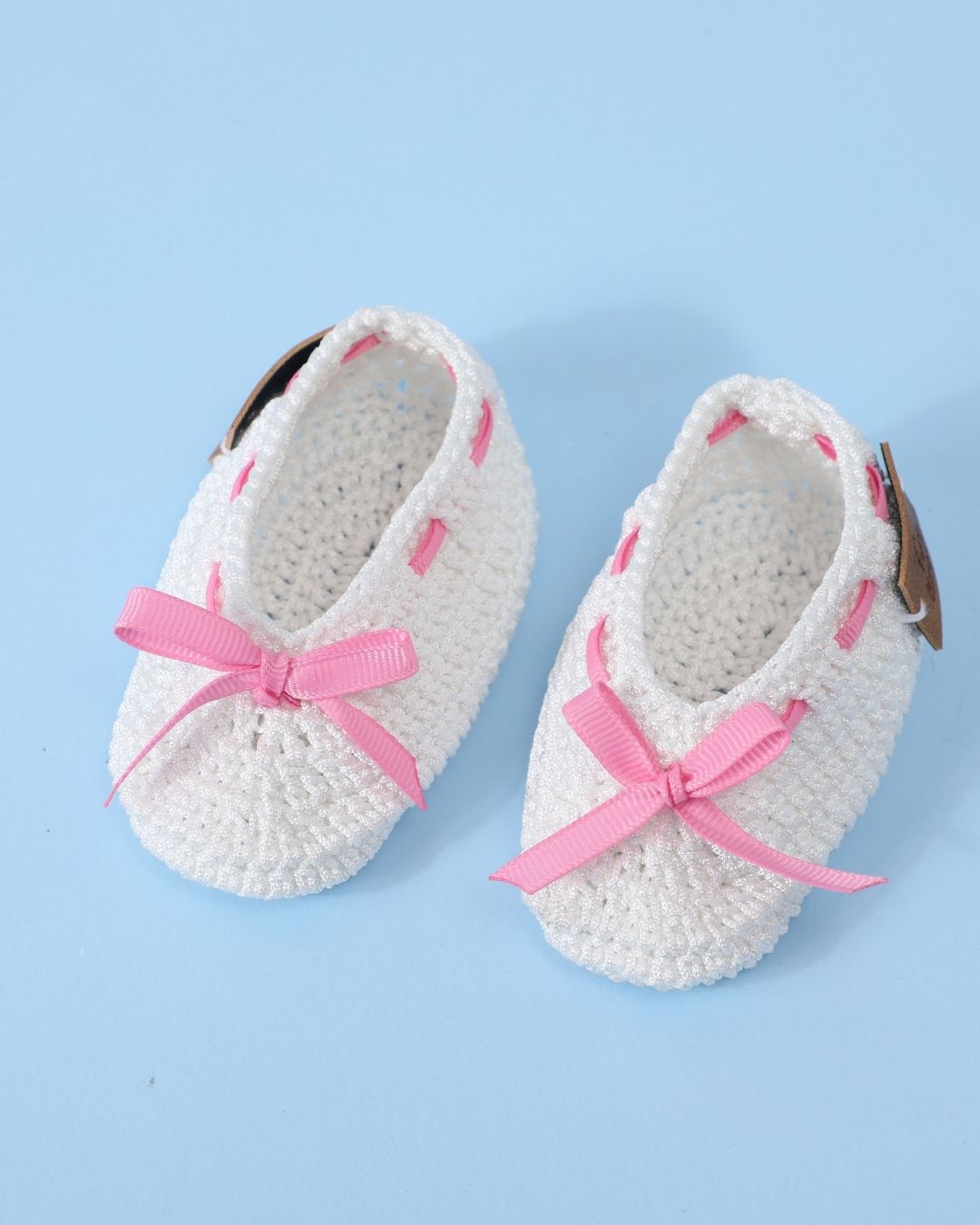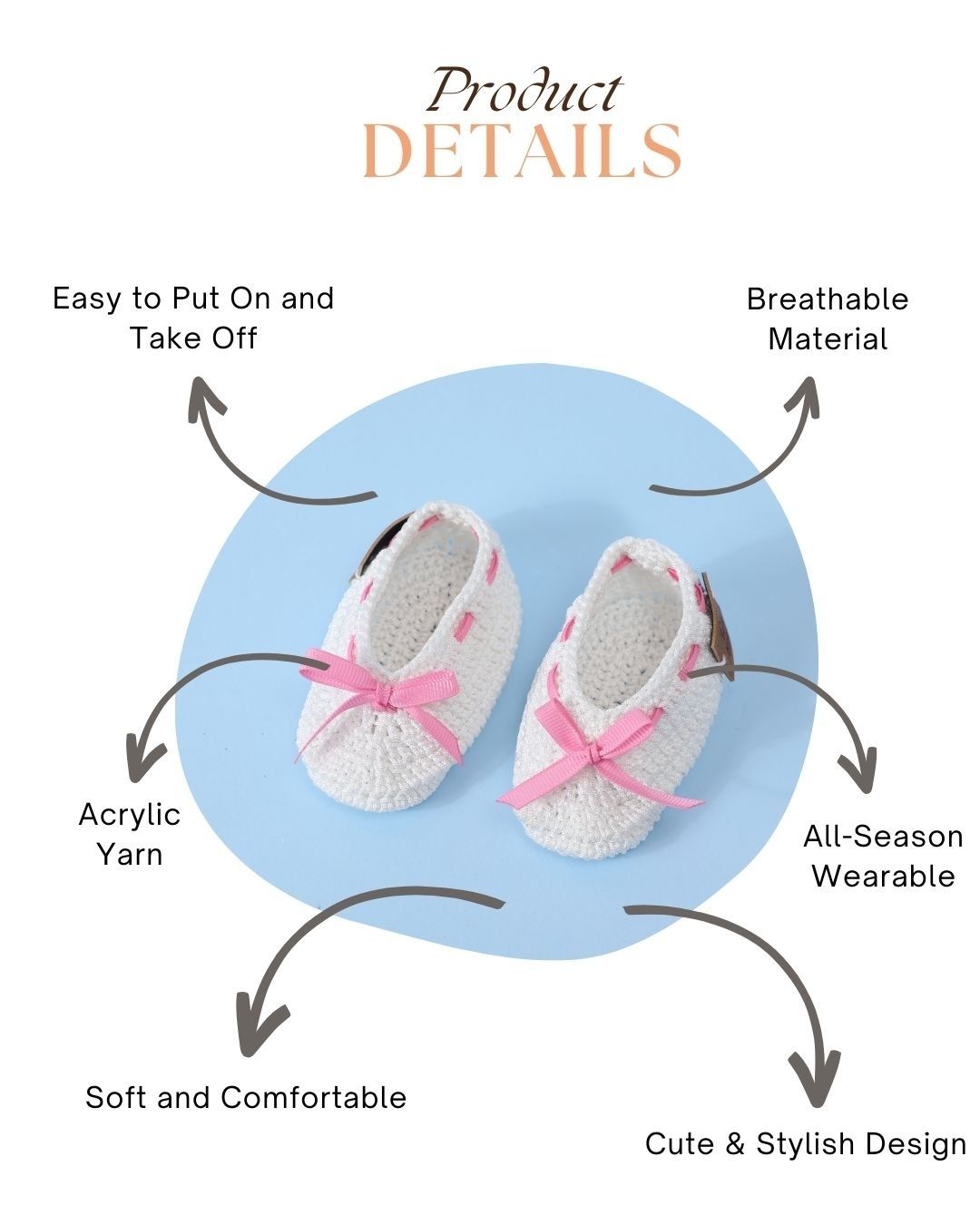 White & Pink Handmade Crochet Baby Infant Girl Booties