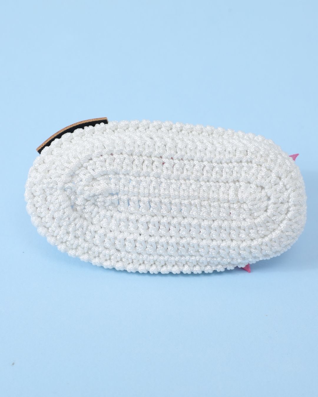These handmade crochet baby booties in white and pink are an adorable addition to your baby’s wardrobe. Made with premium acrylic wool, these baby booties are perfect for infants aged 6-12 months and suitable for all seasons. The soft pink accents on the classic white base make these booties for baby girls both charming and stylish. Lightweight, breathable, and easy to wear, these booties for girls ensure your baby’s feet stay comfortable and protected. Whether for a special event or daily wear, these baby booties are a wonderful choice.