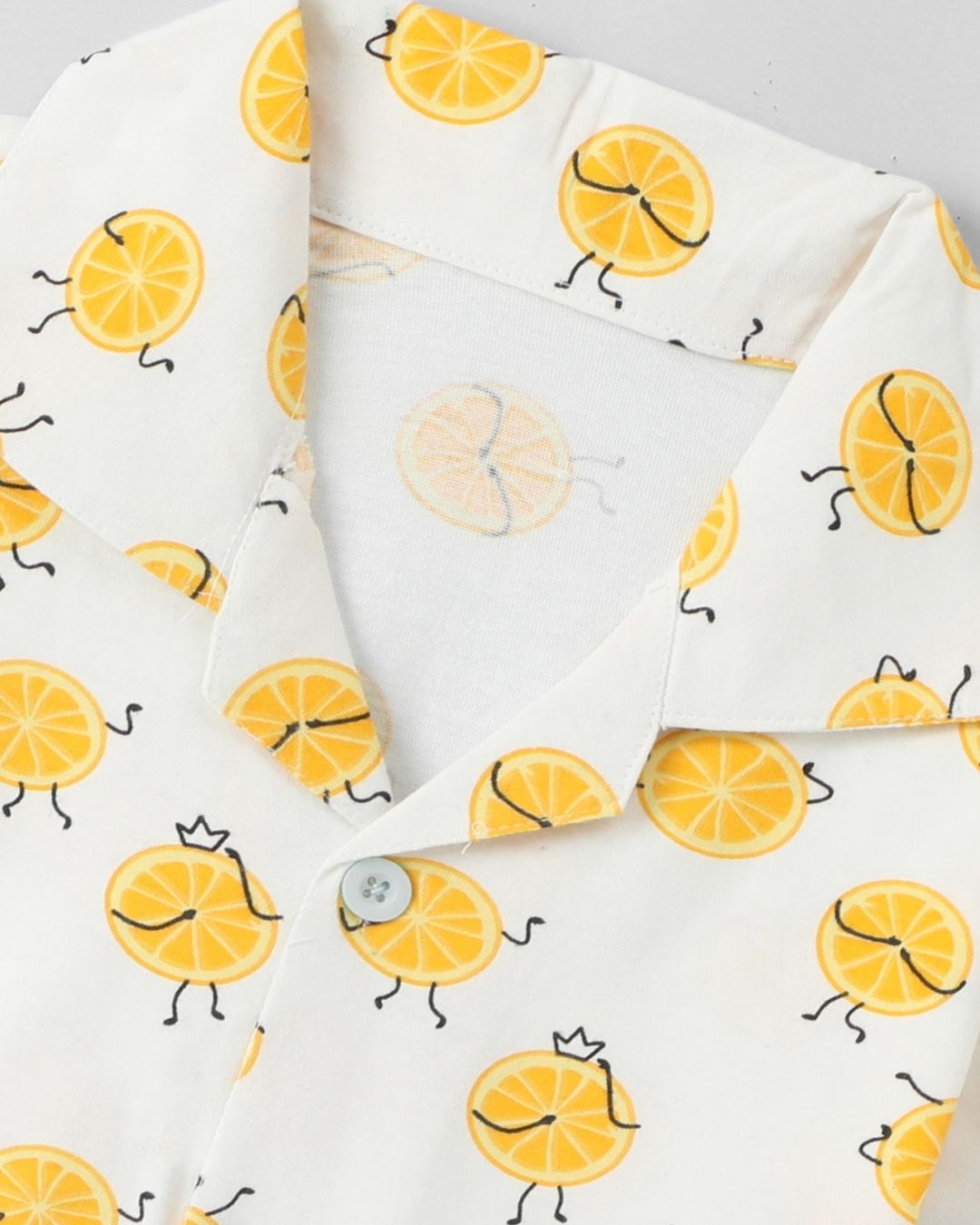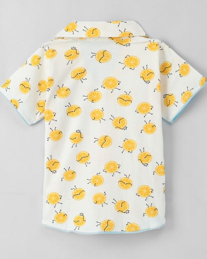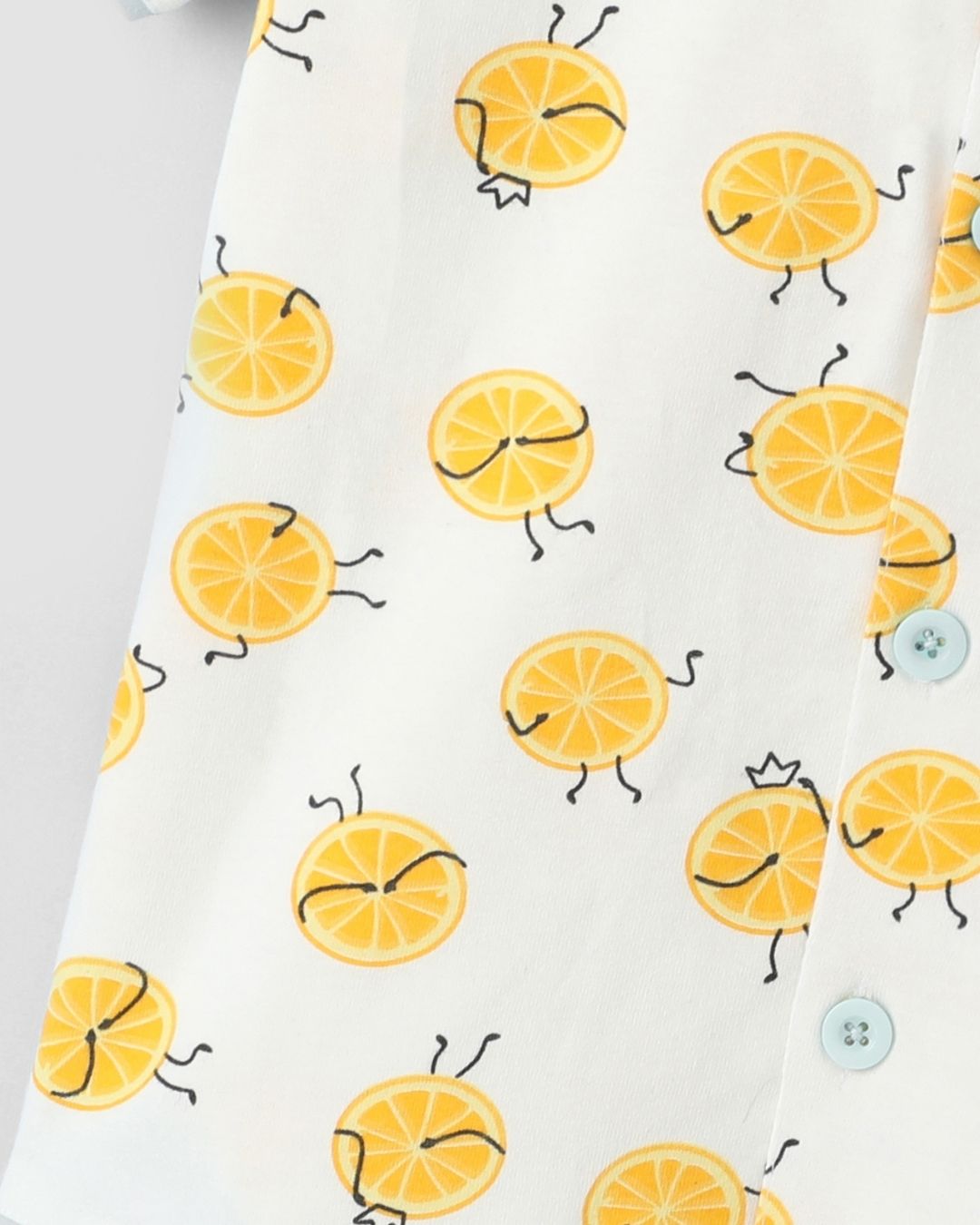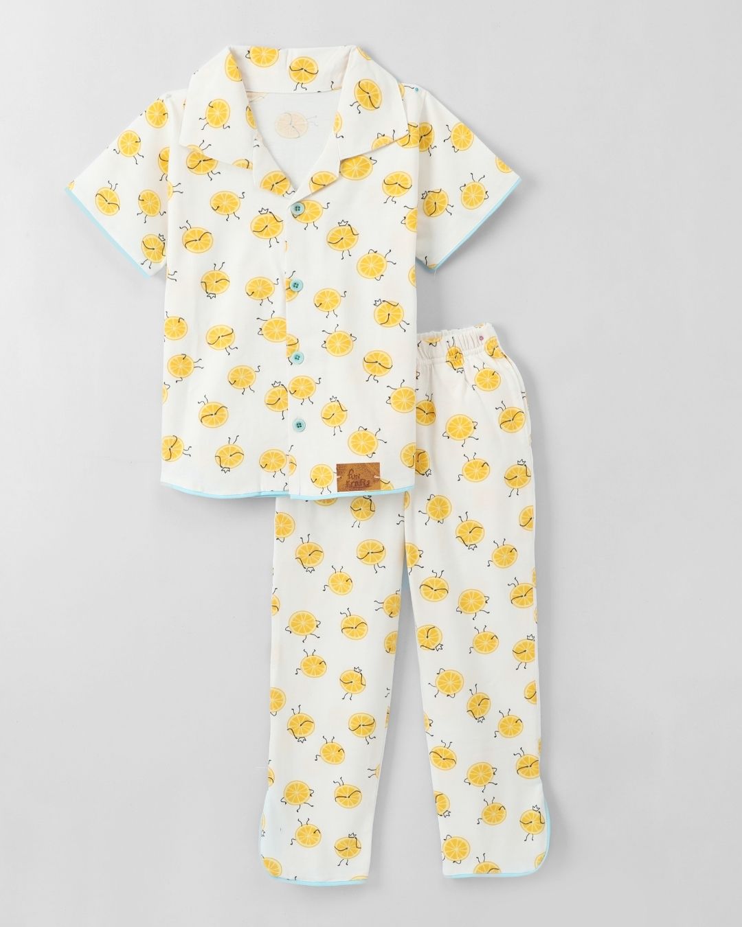 White Premium Cotton Half SleevesLemon Printed T-Shirt & Pyjama Set for Girls