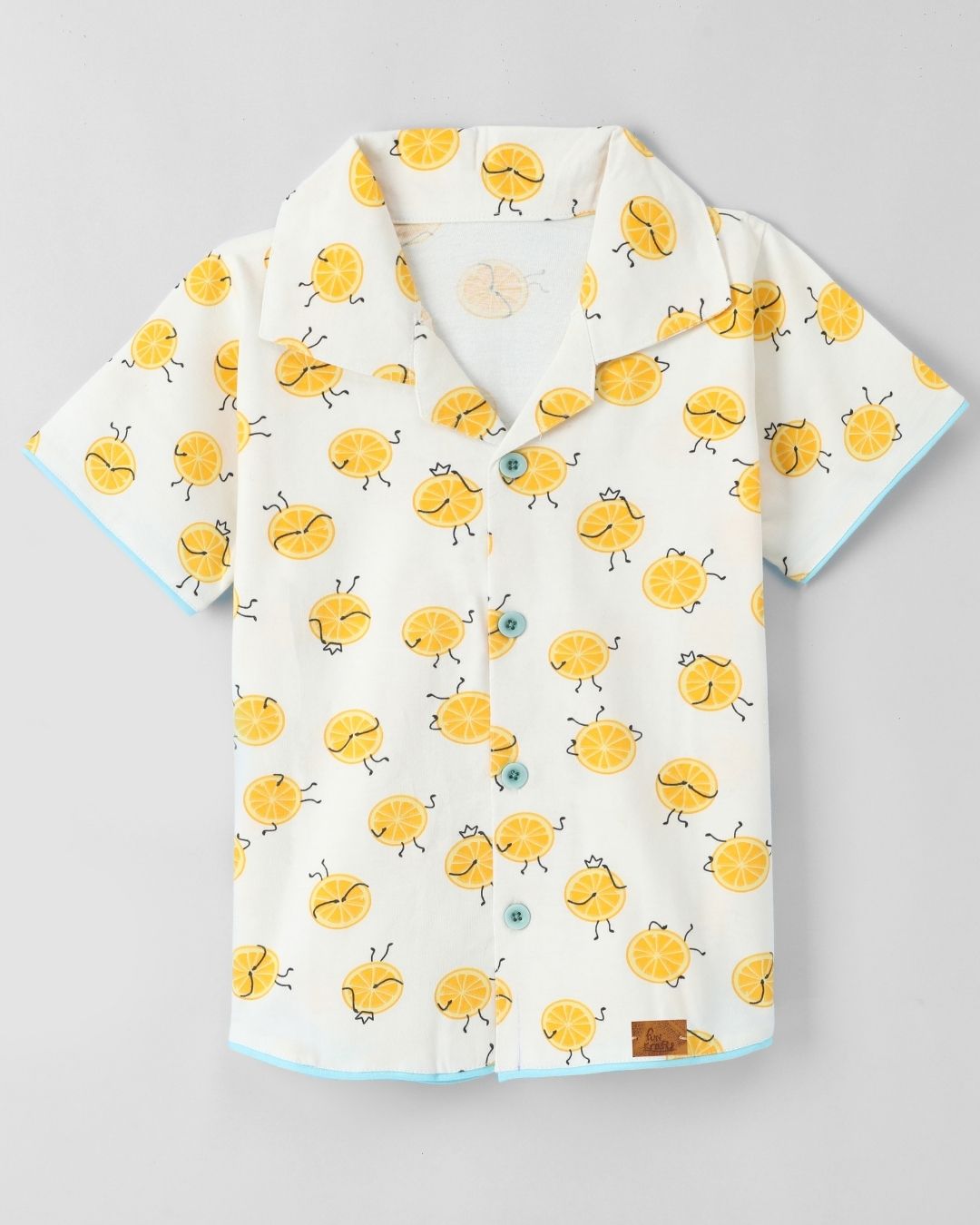 Add a refreshing burst of style to your little girl’s wardrobe with this adorable white and yellow lemon-printed T-shirt and pyjama set. Crafted from high-quality, breathable cotton, this set is perfect for both sleep and lounge wear, offering a light and airy feel that's comfortable against the skin. The T-shirt features a cheerful lemon print, adding a fun and lively element to the outfit, while the coordinating yellow pyjamas provide a snug yet relaxed fit. Whether it’s worn for bedtime or during cozy afternoons at home, this set delivers both comfort and cuteness in spades. The half-sleeve T-shirt allows for ease of movement, while the elastic waistband on the pyjamas ensures a secure yet flexible fit. Ideal for year-round wear, this set is durable enough for repeated use and easy to care for, making it a convenient and stylish choice for your child’s everyday wardrobe.