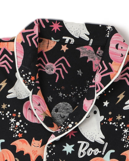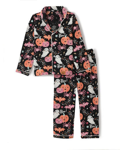 Black Premium Cotton Full Sleeves Halloween Printed T-Shirt & Pyjama Set for Boys & Girls