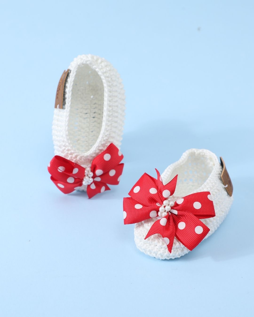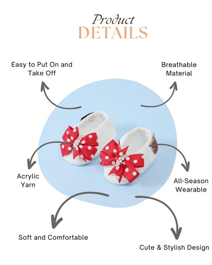 White & Red Handmade Crochet Baby Infant Girl Booties