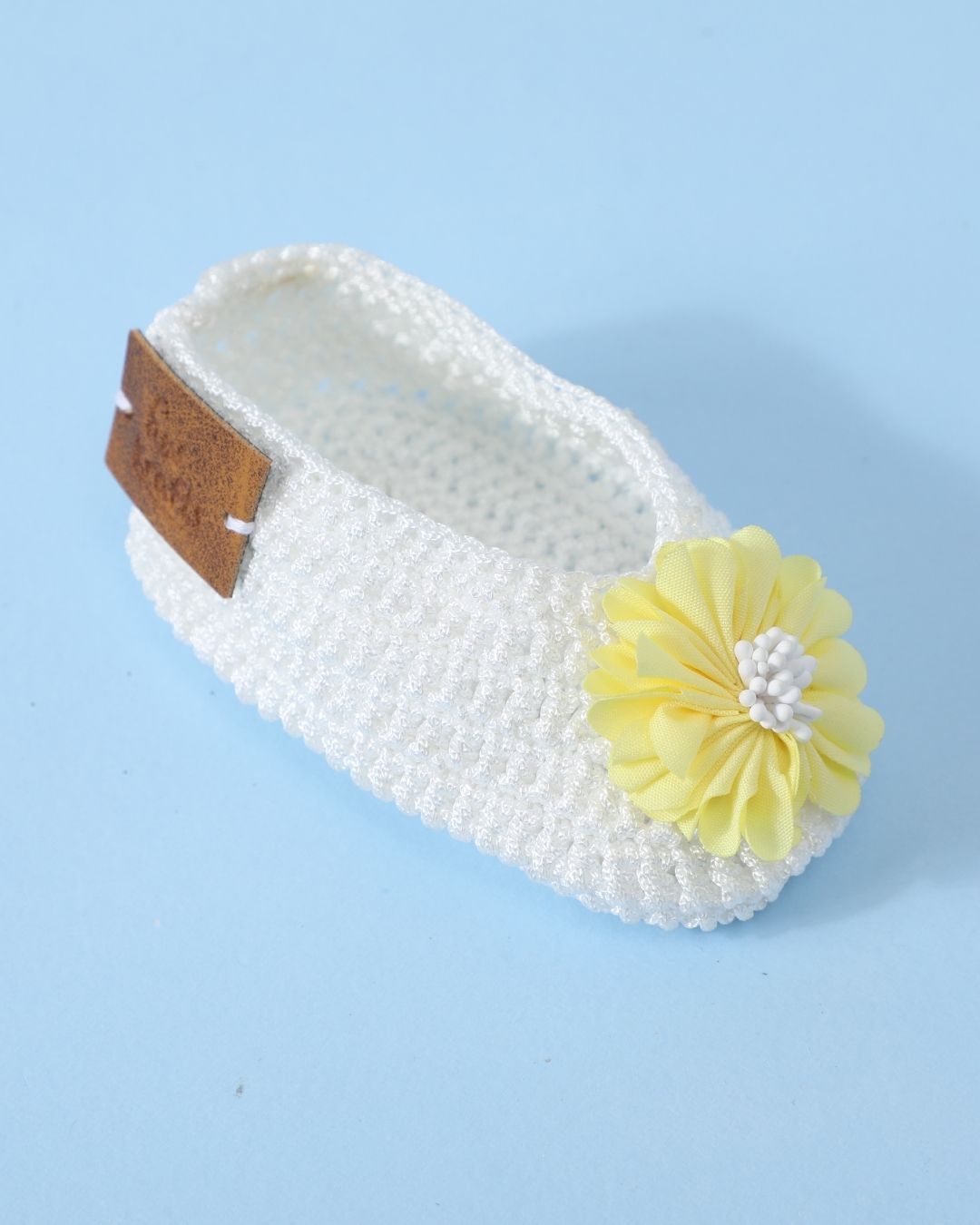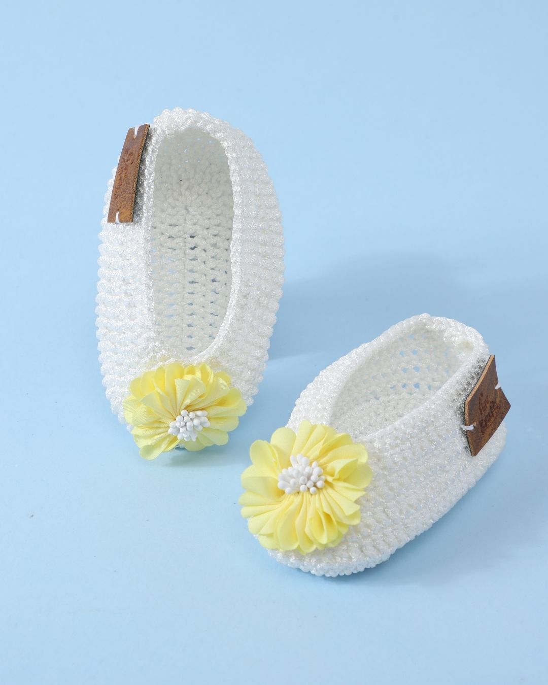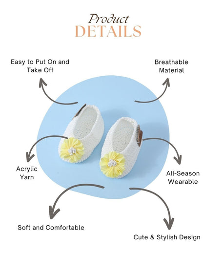 White & Yellow Handmade Crochet Baby Infant Girl Booties
