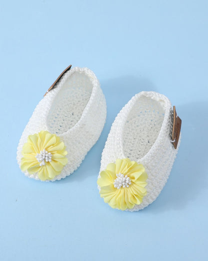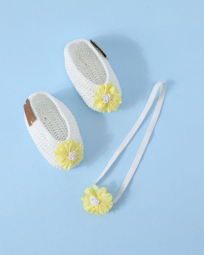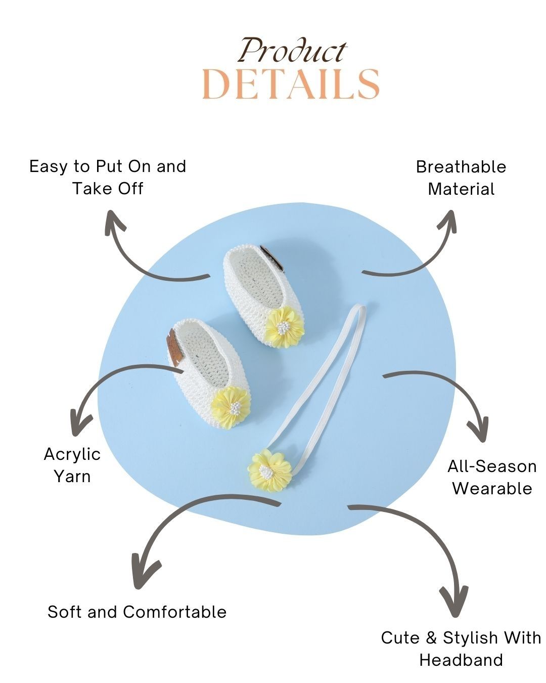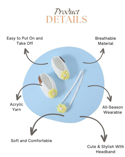 White & Yellow Handmade Crochet Baby Infant Girl Booties With Headband