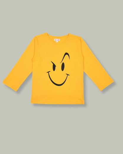 Yellow & Black Smiley Printed Cotton Night Suit for Kids