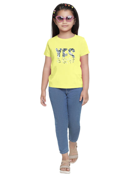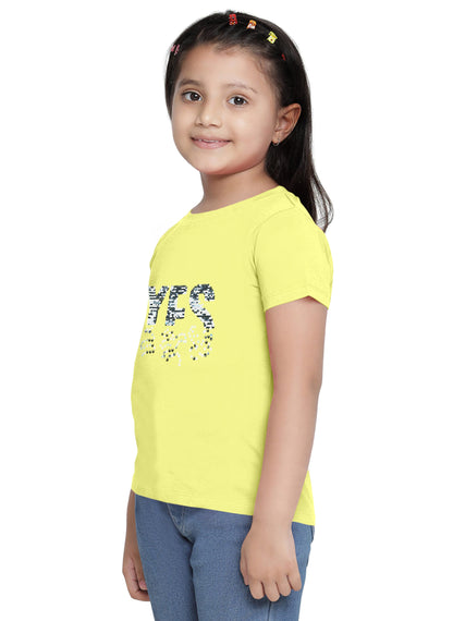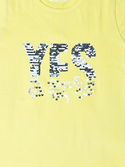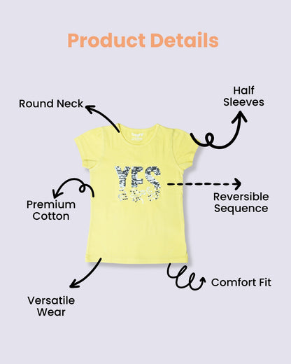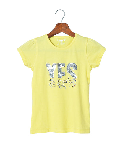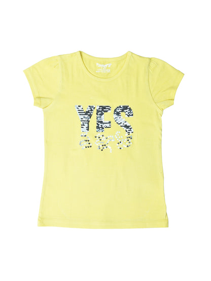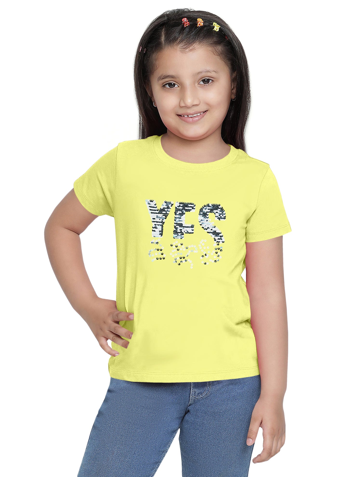 Get ready to shine bright in the girls yellow sequin pure cotton T-shirt by Funkrafts. Perfect for a day of play or a special evening out, this t-shirt is sure to bring smiles all around.