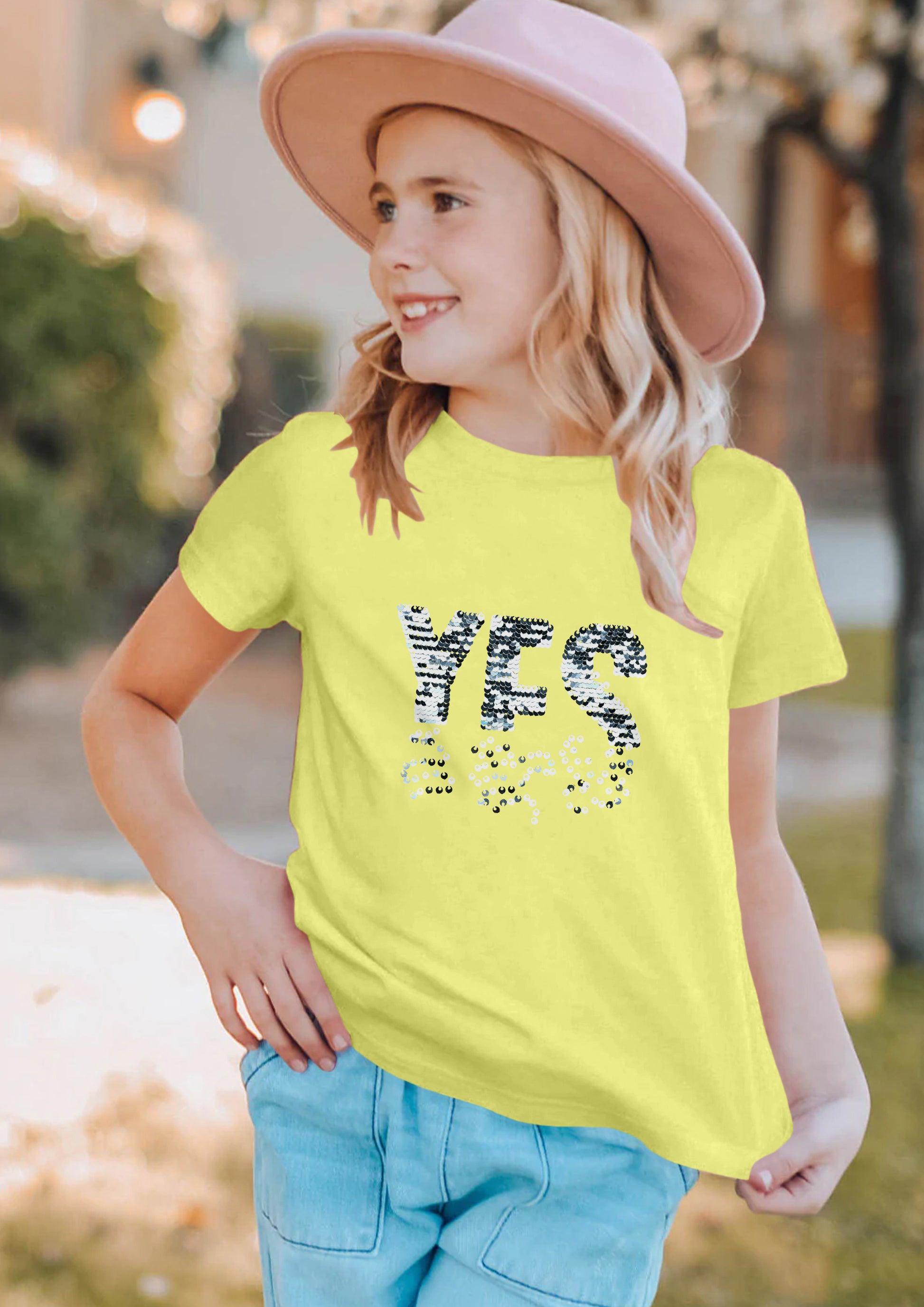 This t-shirt is adorable and stylish. The yellow color is vibrant, and the sequins add a fun sparkle. My daughter loves it!