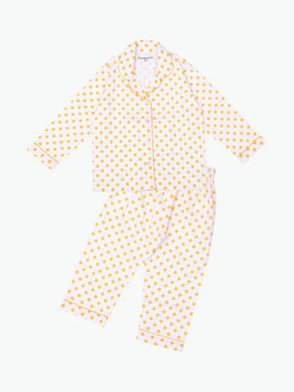 Yellow Dots Printed Cotton Night Dress for Girls
