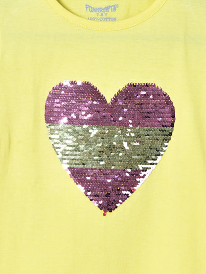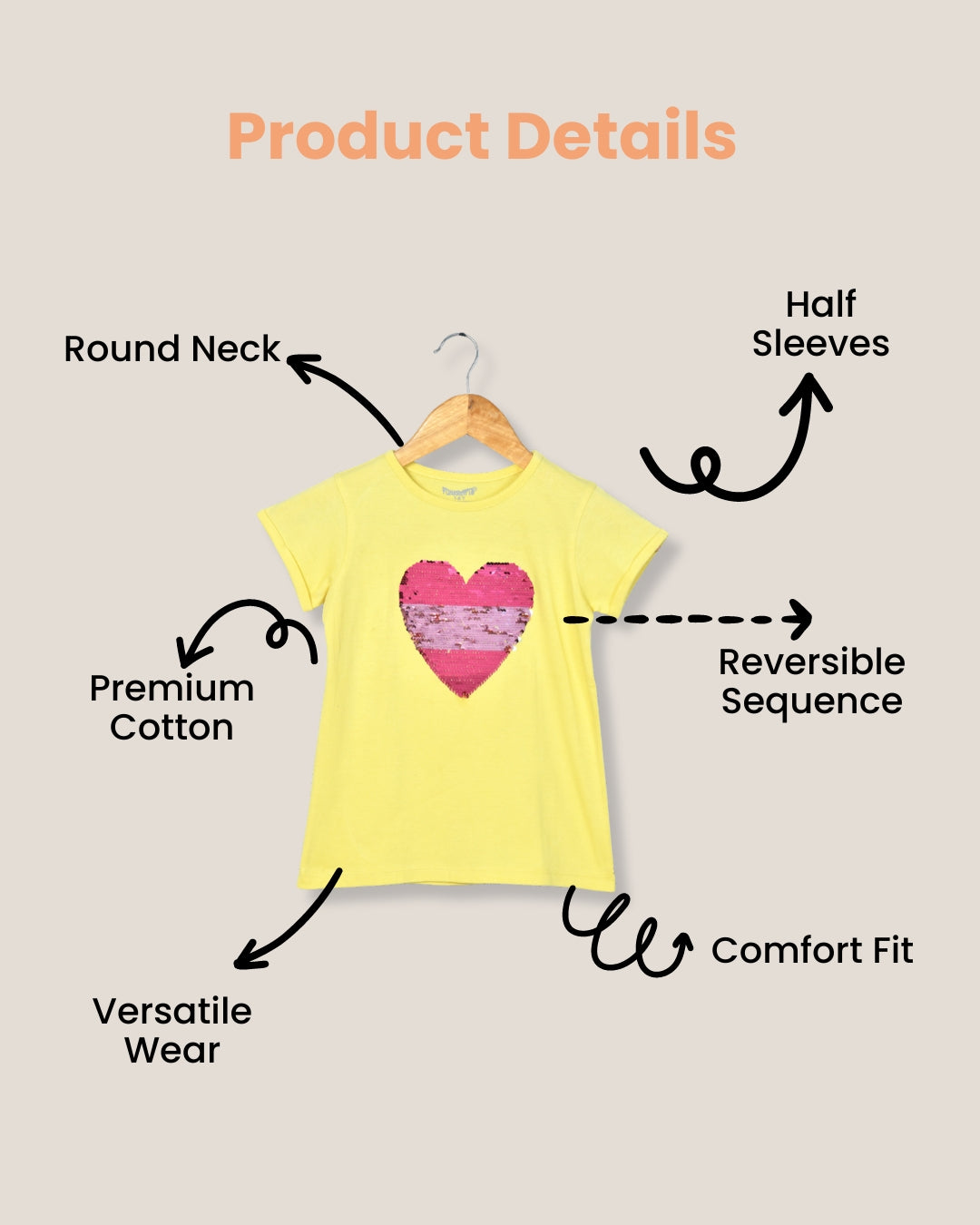 Make a style statement in this amazing girls yellow flip sequin pure cotton T-shirt by Funkrafts. Crafted with 100% cotton, this t-shirt is built for comfort and perfect for all occasions.