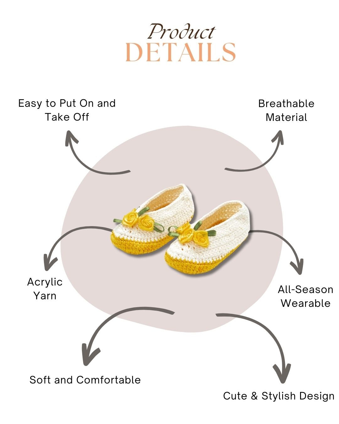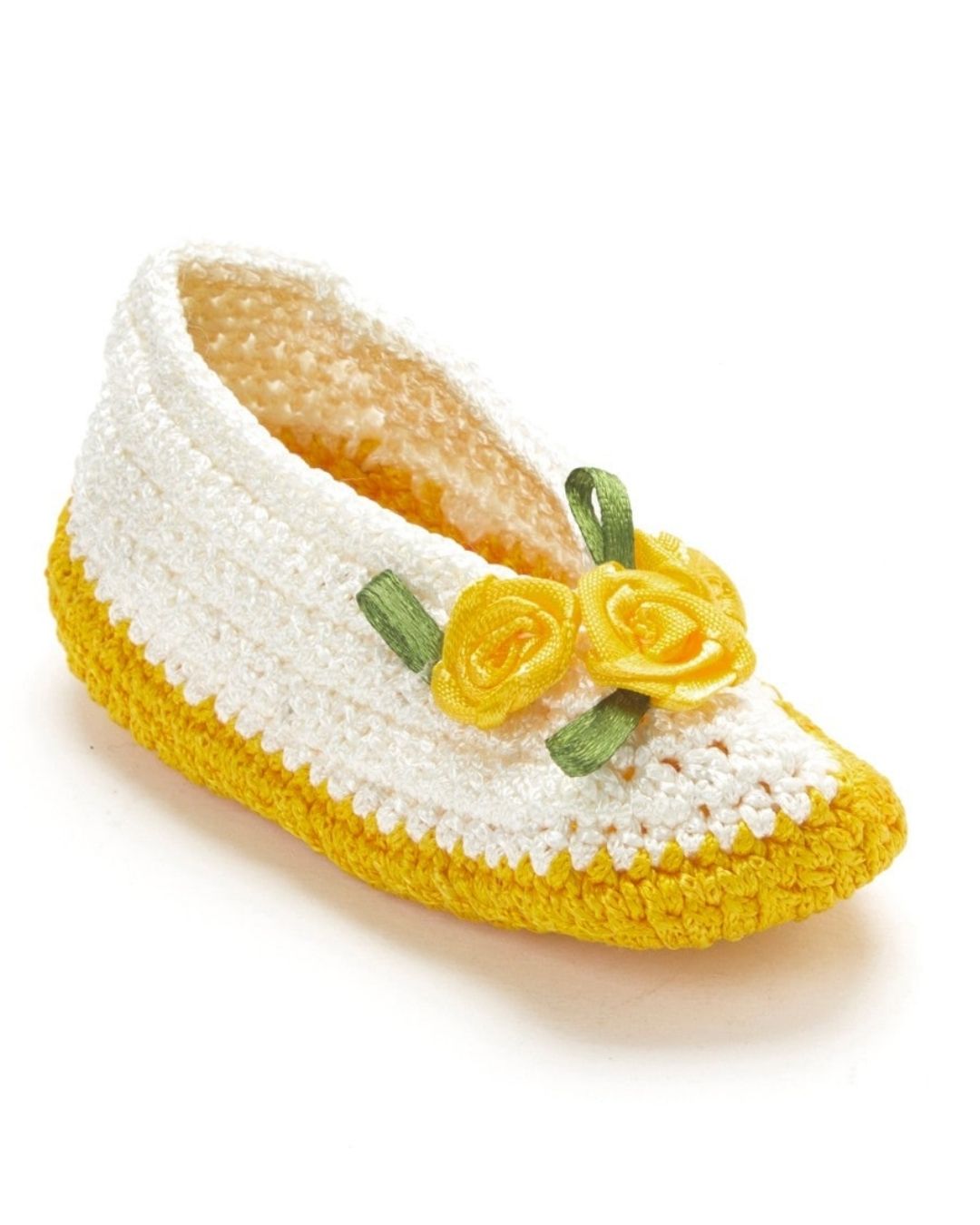 A sweet and special gift for the expecting mother's baby shower. These yellow & white crochet baby booties for girls are the perfect way to keep your little one's feet warm and cozy.
